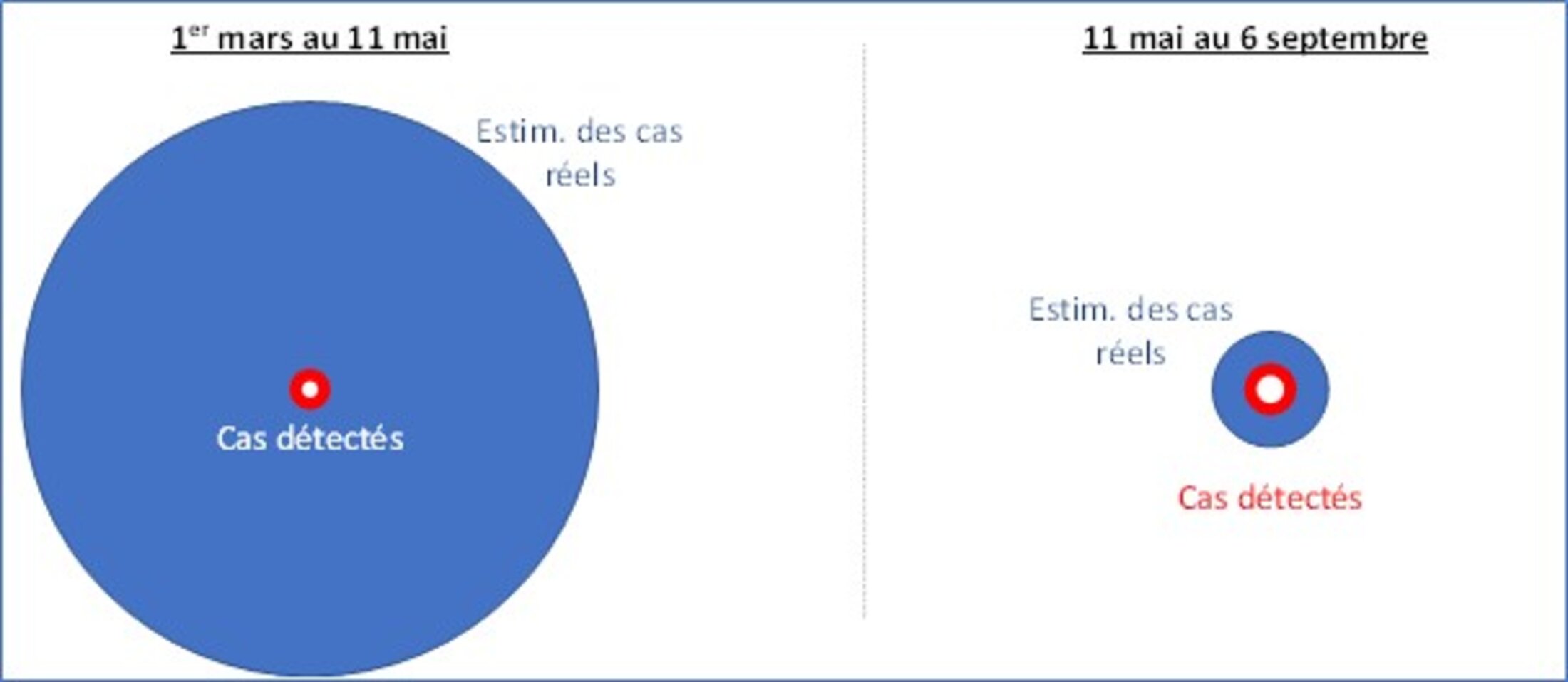 Au 11 mai, la France avait détecté 139 063 cas positifs pour une estimation de 3,8 millions de personnes infectées selon Pasteur, soit un succès de la détection à 3,6%.