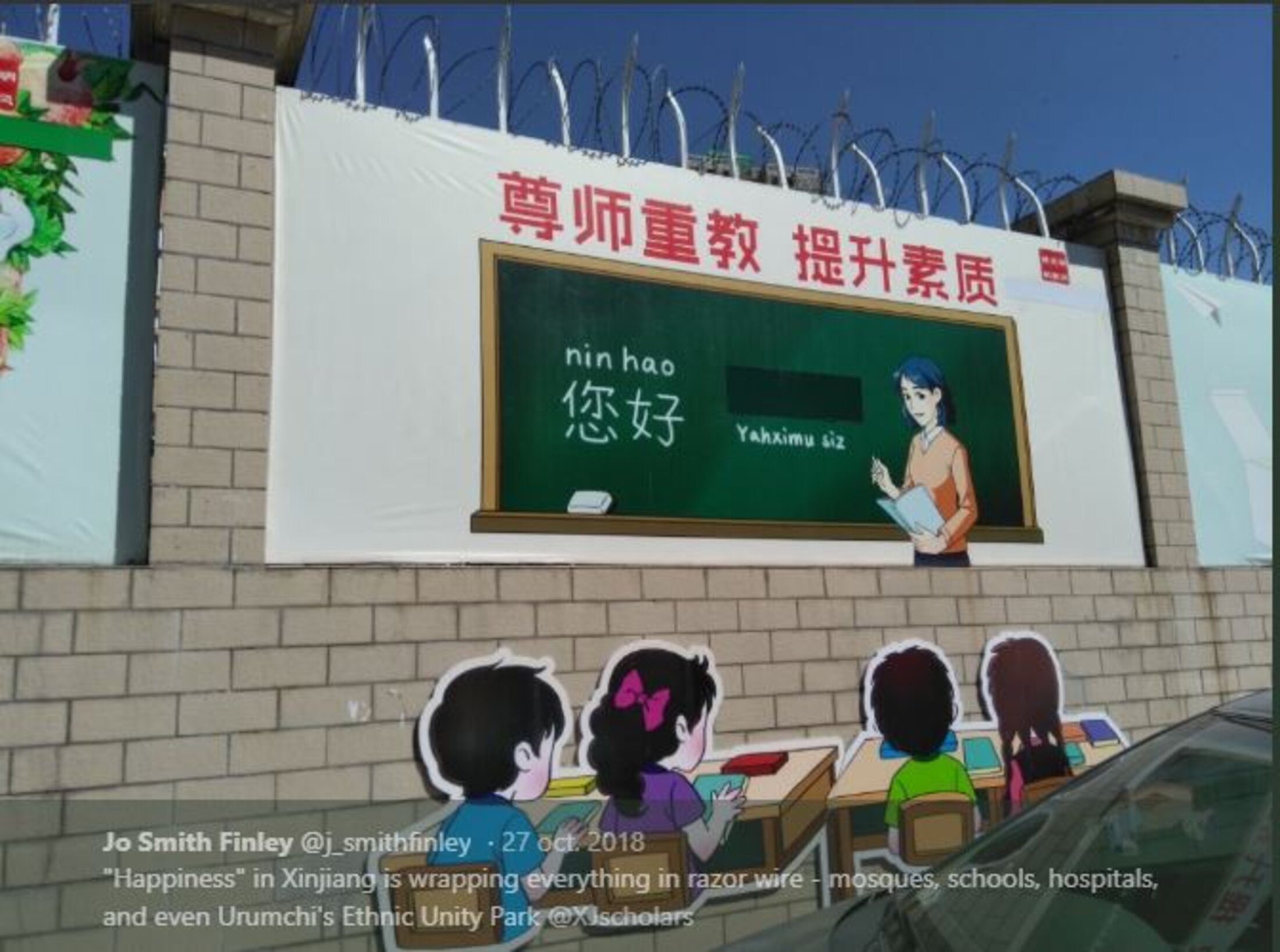En effet, l'un des principaux objectifs des camps d'internement de masse qui détiennent des Ouïghours en détention extrajudiciaire est la formation linguistique. Les détenus qui apparaissent dans les vidéos de propagande d'État racontent à maintes reprises que l'apprentissage de la «langue nationale» les a libérés de leurs «pensées extrémistes».