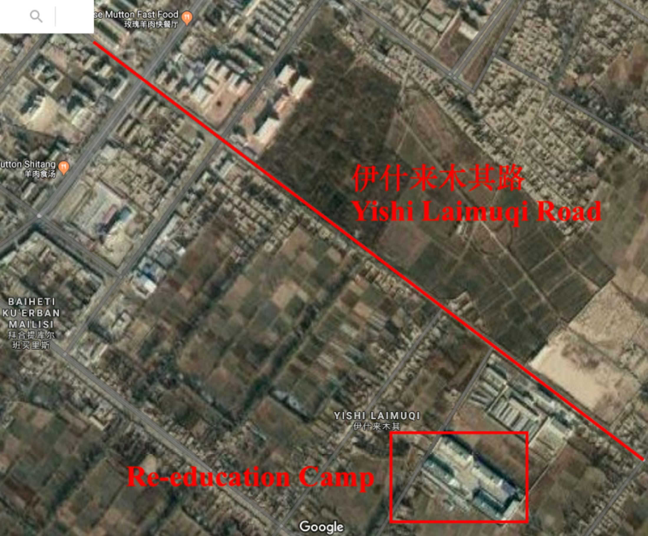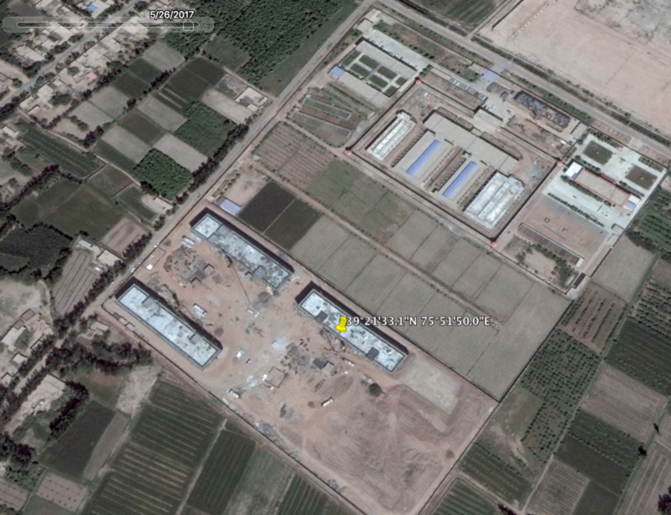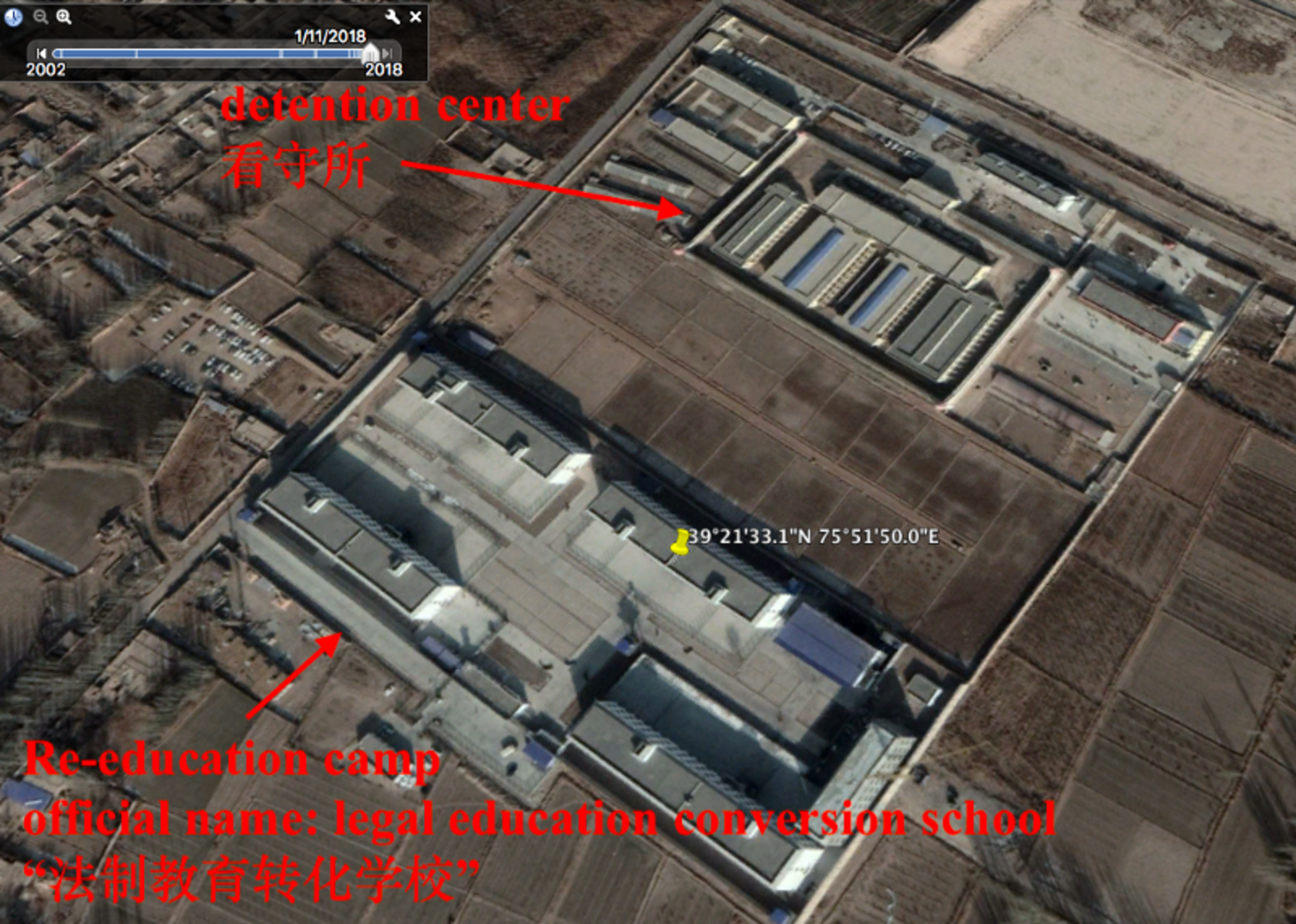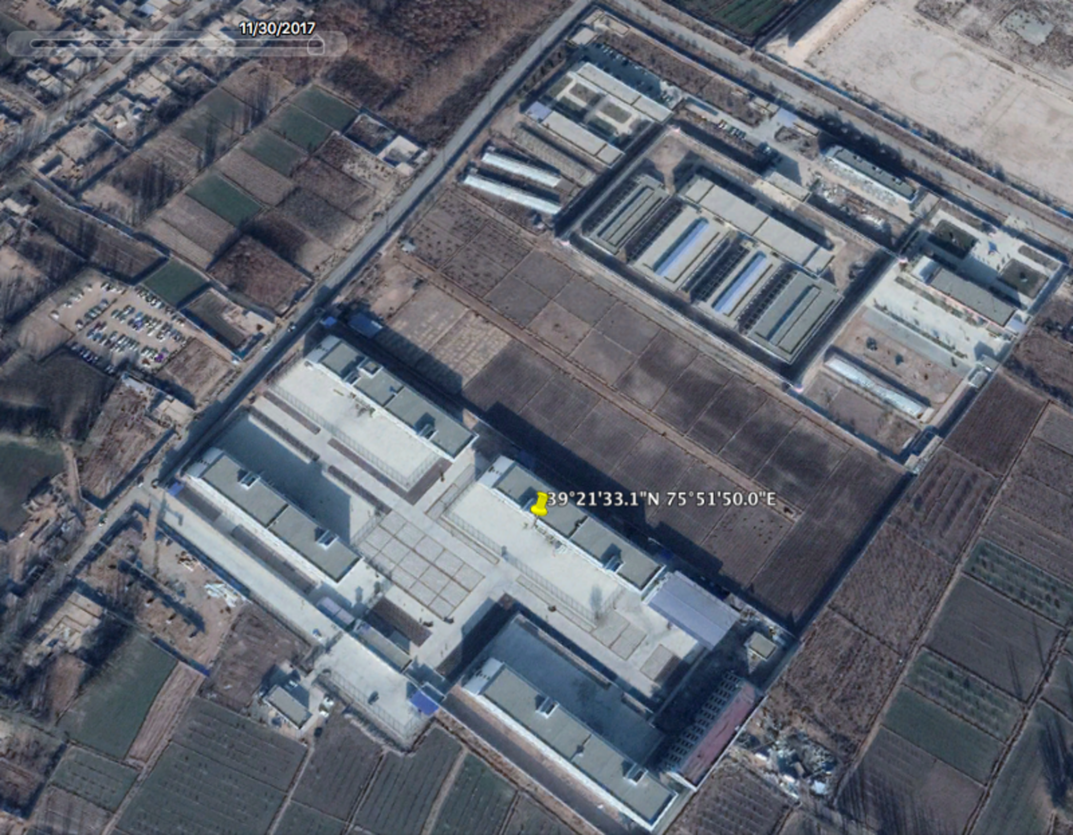 (Cette étude a été publiée sur le site d'information sinophone Medium.com en anglais et en chinois le 20 mai 2018. L'auteur a identifié pour le moment 9 camps de concentration appelés officiellement « centre fermé de rééducation ». Nous avons traduit l'étude de géolocalisation du premier de ces camps qu'il a identifiés. Pour voir le reste de ses découvertes : https://medium.com/@shawnwzhang/list-of-re-education-camps-in-xinjiang-%E6%96%B0%E7%96%86%E5%86%8D%E6%95%99%E8%82%B2%E9%9B%86%E4%B8%AD%E8%90%A5%E5%88%97%E8%A1%A8-99720372419c)