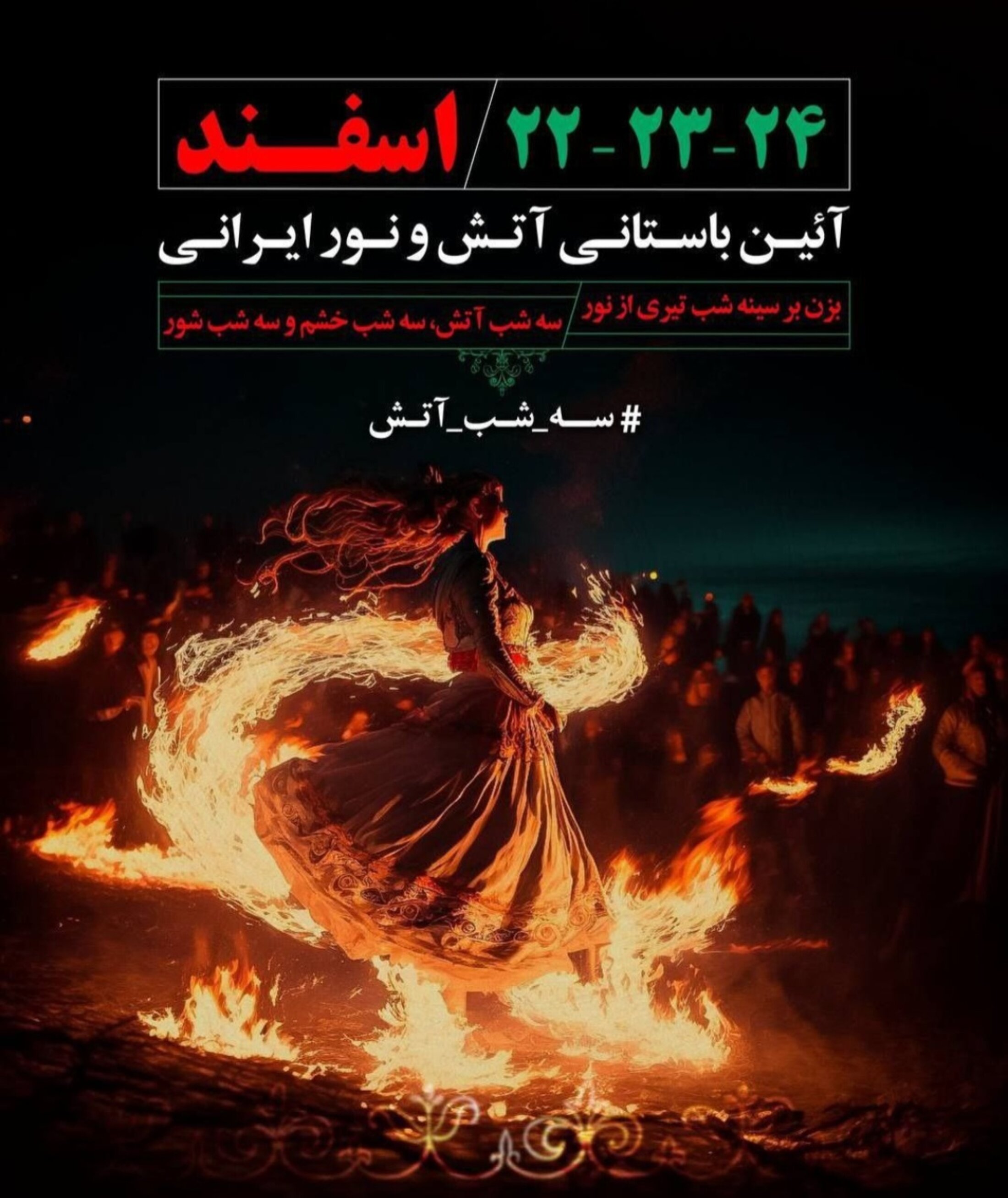 Nous vous souhaitons un joyeux Chahar-Shanbeh-soori et une bonne année à venir, et nous espérons endurer et persévérer, jusqu'à ce que la justice se lève comme un jour nouveau, sur la vérité visible par tous.