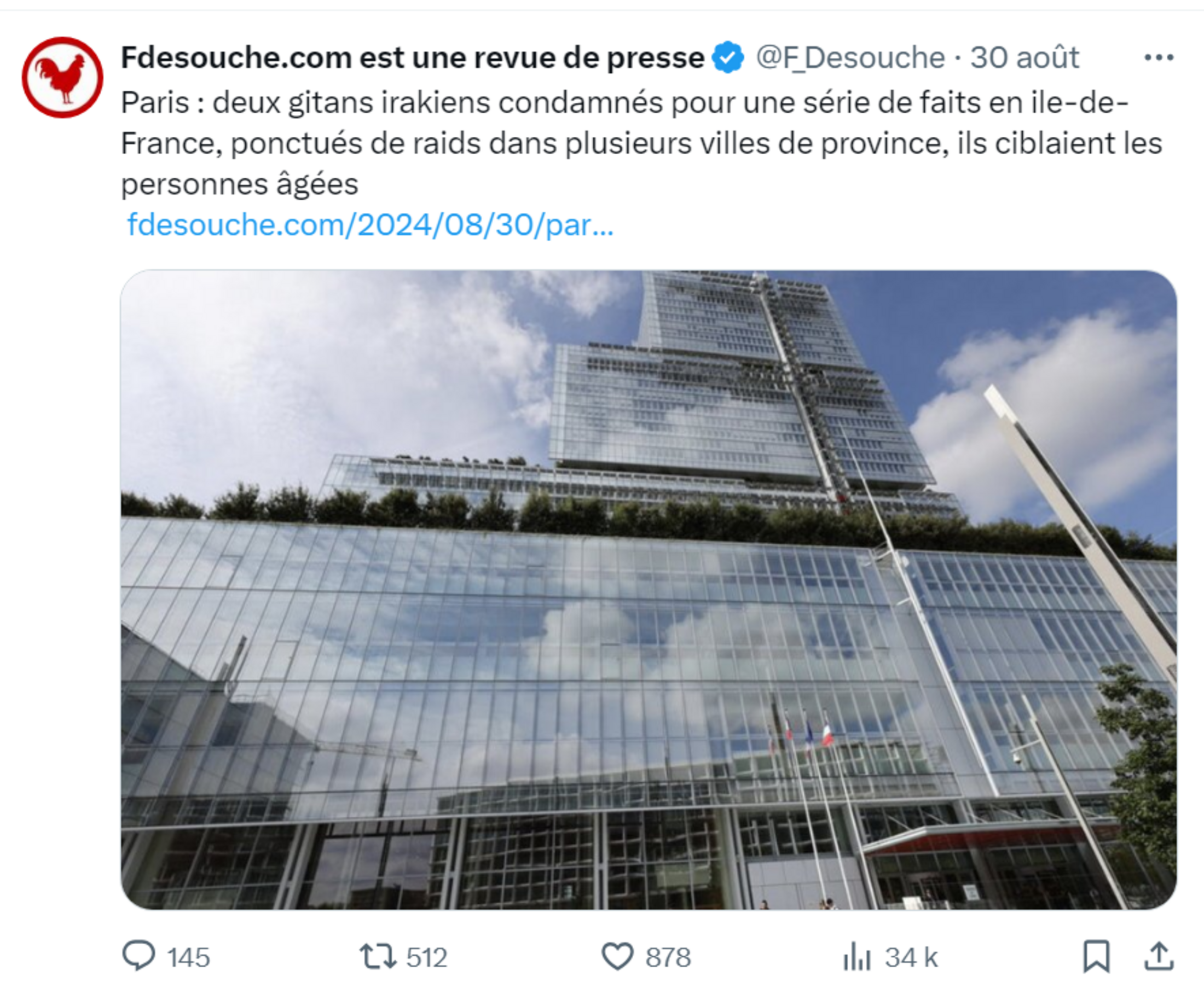 Des comptes spécialisés à forte audience, qui se présentent comme des “revues de presse” sont chargés de la présélection, d’injecter dans la sphère matière à commentaire raciste ou discriminatoire. Leurs yeux sont rivés sur la nationalité, ou à défaut le prénom des suspects.
