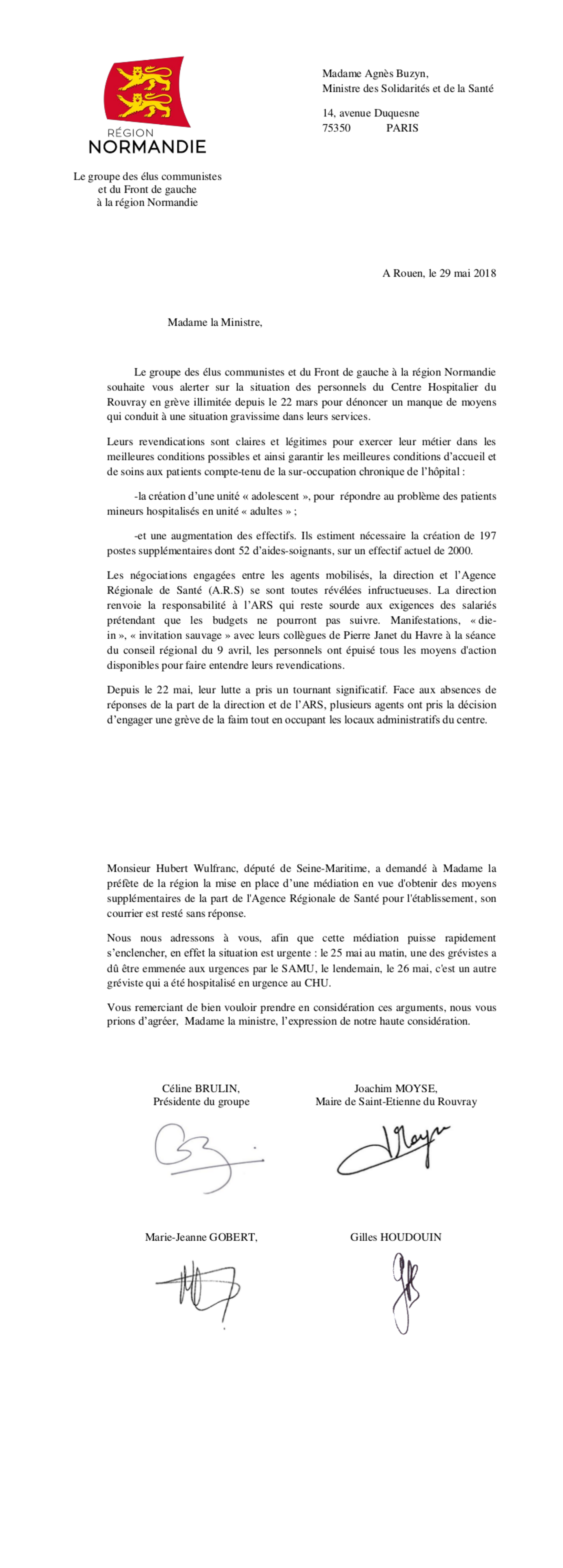Groupe des élu·es communistes et du Front de gauche à la région Normandie - lettre à la Ministre de la Santé