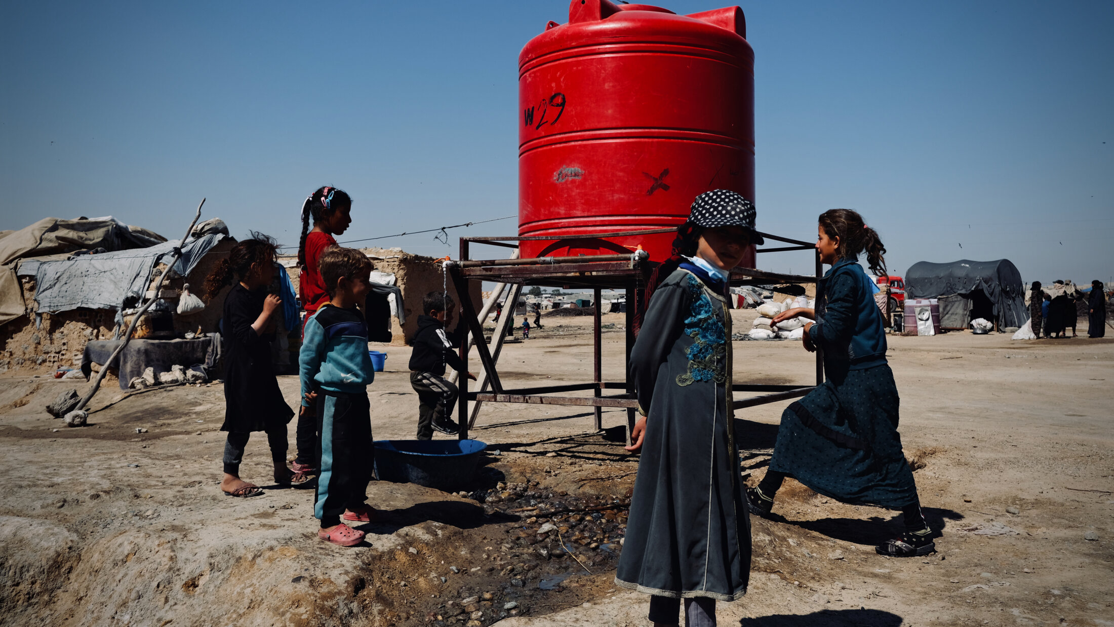 Si la crise de l’eau impacte l’ensemble de la région, elle touche de manière exacerbée les populations les plus vulnérables, parmi lesquelles les personnes déplacées vivant dans des sites informels. Autour de Raqqa, 100 000 personnes déplacées vivent dans ces sites. À la différence des camps, les sites informels ne sont pas gérés par les autorités locales. Les besoins humanitaires y sont immenses, et très peu couverts. Dans ce site, SOLIDARITÉS INTERNATIONAL livre chaque jour de l’eau, préalablement chlorée, à l’ensemble du camp, sans quoi les personnes dépendraient d’une eau impropre à la consommation et courraient un risque important de développer des maladies hydriques.