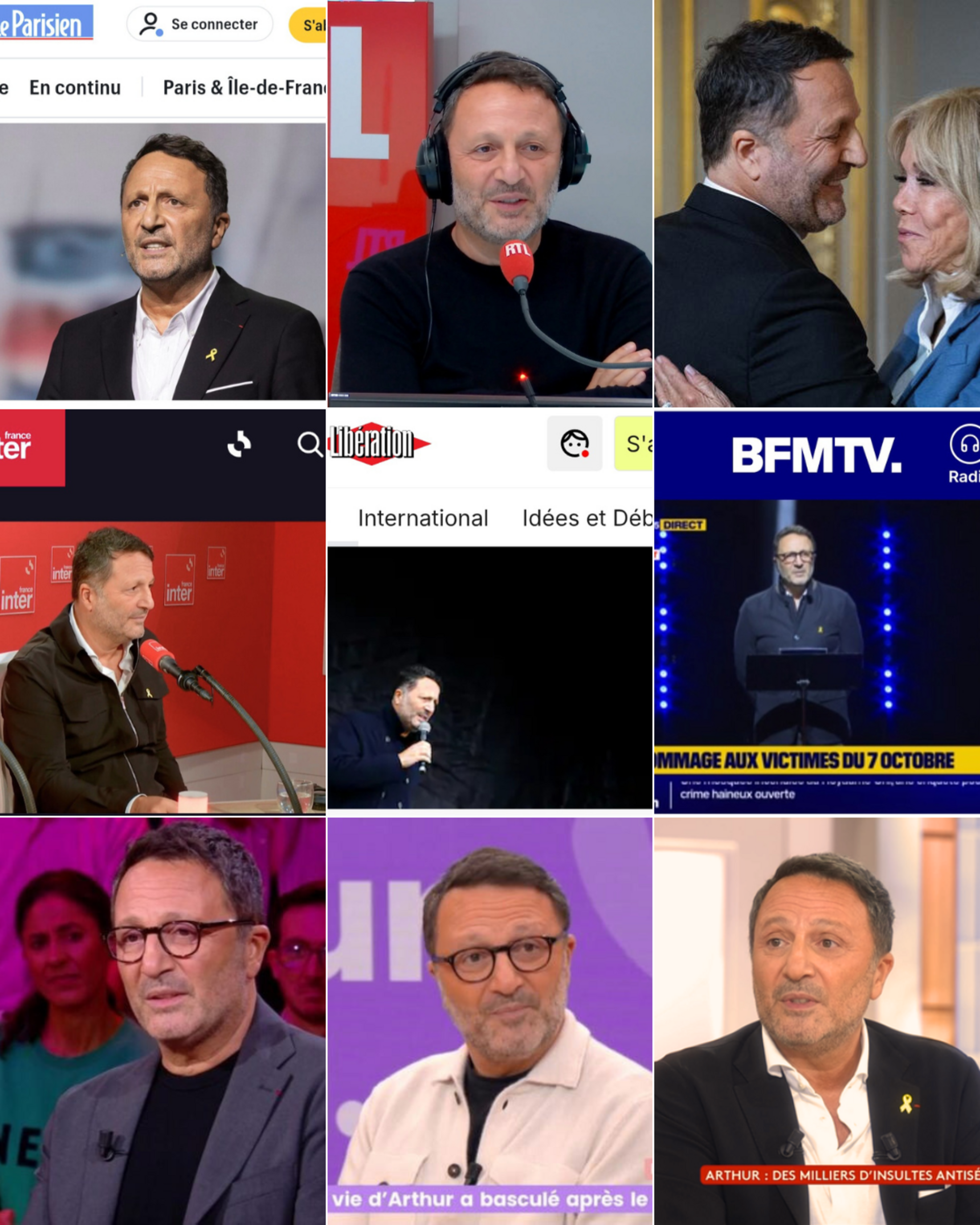 Puis sont venues des insultes antisémites. Ceux qui ont rapproché son comportement problématique avec les femmes et sa religion sont de fieffés connards au même titre que ceux qui assimilent tous les musulmans à des terroristes ou tous les migrants à des violeurs. De plus ces personnes ayant déversé leur fiel antisémite permettent à Arthur non seulement d’accuser d’antisémitisme ceux qui dénoncent ses violences sexistes et sexuelles mais aussi de disposer d’un argument supplémentaire pour faire censurer les images compromettantes. Comme d’habitude la meute médiatique ne met nullement en cause l’extrême droite dans ce déversement de haine religieuse mais cible des supposés motivations antisémites d’une partie de la gauche, notamment des défenseurs de la Palestine qui avaient dénoncé le soutien d’Arthur au gouvernement d’extrême-droite israélien. Arthur qui nous appelle : « les crétins en keffieh hurlant leur haine ». Et nous en venons encore une fois à une instrumentalisation de l’antisémitisme pour un sujet initial qui n’avait strictement rien à voir avec la judéité de l’animateur.