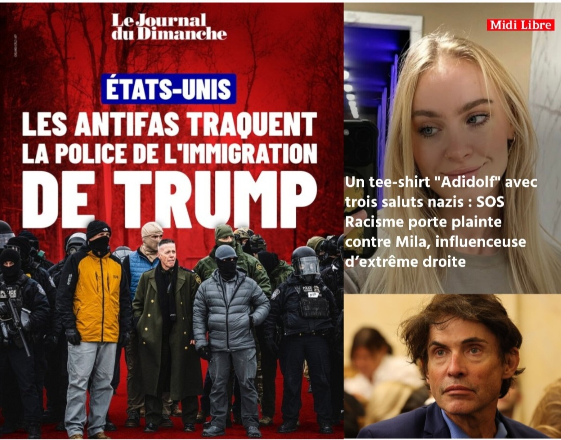 On en arrive au JDD, les rois de l'inversion accusatoire, les professionnels de la réécriture de l'Histoire. Gros titre : "États-Unis : les antifas traquent la police de l'immigration de Trump. MINNEAPOLIS. Dans les bastions progressistes du Midwest, les agents fédéraux d'ICE sont devenus la cible d'actions militantes de plus en plus radicales." Il y a tant à dire sur votre médiocrité chers "journalistes" du JDD. Ce sont bien les agents de la ICE qui traquent, raflent et déportent des immigrés illégaux et légaux, qui enferment des enfants, qui violentent des manifestants. Ce sont bien des agents de la ICE qui tuent des citoyens. Combien d'agents de la ICE ont été mis hors d'etat de nuire par des antifascistes : aucun. Quant à ces fameuses "actions militantes radicales" des "antifas", il s'agit de se munir d'un sifflet pour prévenir le voisinage de la venue de la ICE et de jouer des instruments de musique en bas de leur hôtel. On est très loin de la violence perpétrée par la milice fasciste de Trump. Ceci dit, en criminalisant l'antifascisme, le JDD nous indique clairement dans quel camp il se situe.