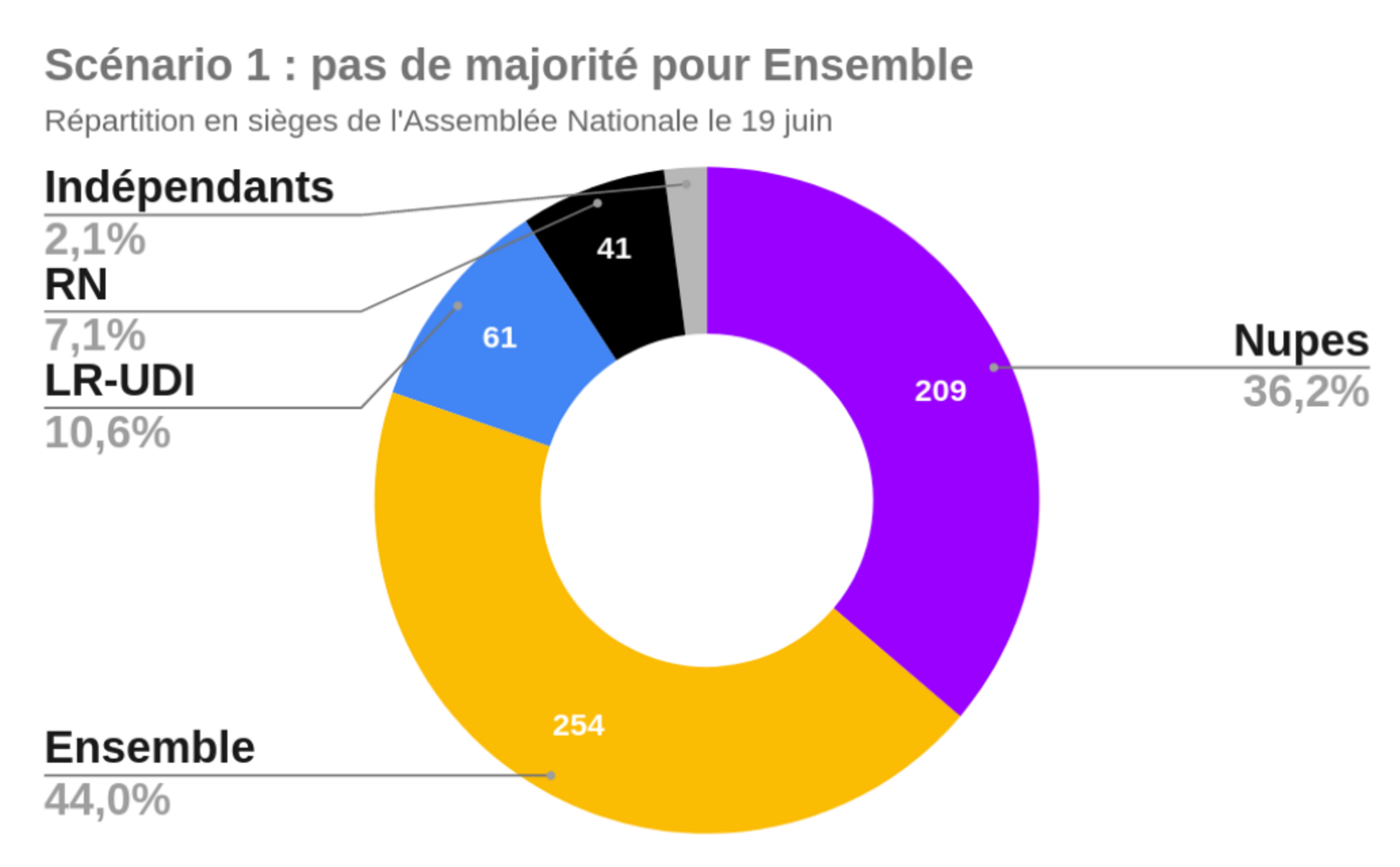 Faisons d'abord l'hypothèse qu'il y aura autant de victoires de la NUPES que de victoire d'Ensemble (141 chacun).