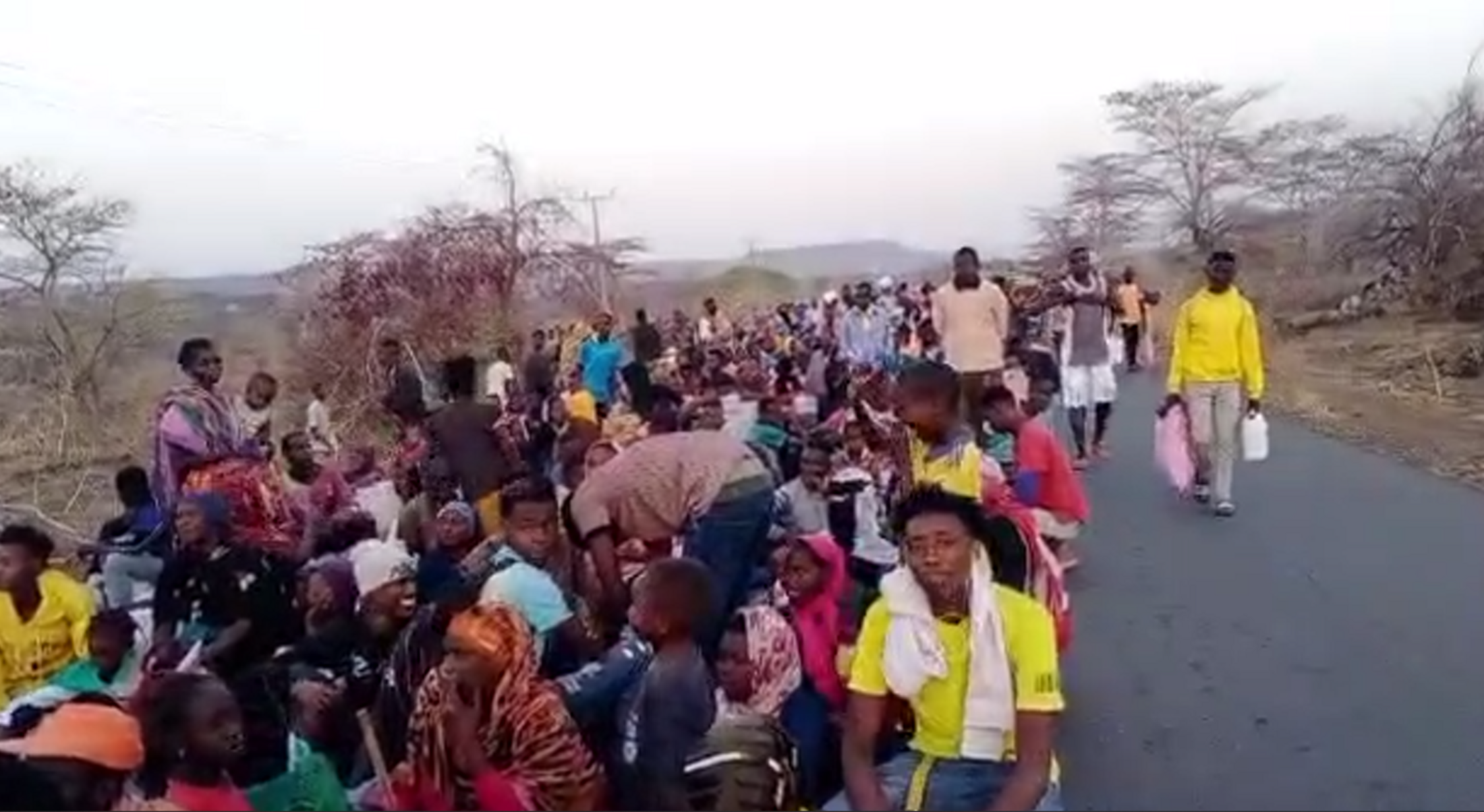 Mais à peine 3 kilomètres après le départ de la marche, leur progression a été stoppée par les forces de la police fédérale éthiopienne. Certaines personnes ont été arrêtées et détenues par les autorités éthiopiennes, les autres sont simplement bloquées sur la route depuis plusieurs jours. Dans une vidéo filmée sur place, l'un des réfugié·e·s exprime sa colère contre le gouvernement éthiopien : "Il y a des noms qui sont apparus sur la liste des personnes recherchées, juste parce qu'ils ont participé à une réunion. La police menace la sécurité de certains individus, alors que c'est justement un des problèmes qui nous poussent à partir. Le gouvernement utilise la violence contre les réfugiés, et bloque l'accès à certaines ressources, ils empêchent qu'on ait accès à de l'eau et à de la nourriture."