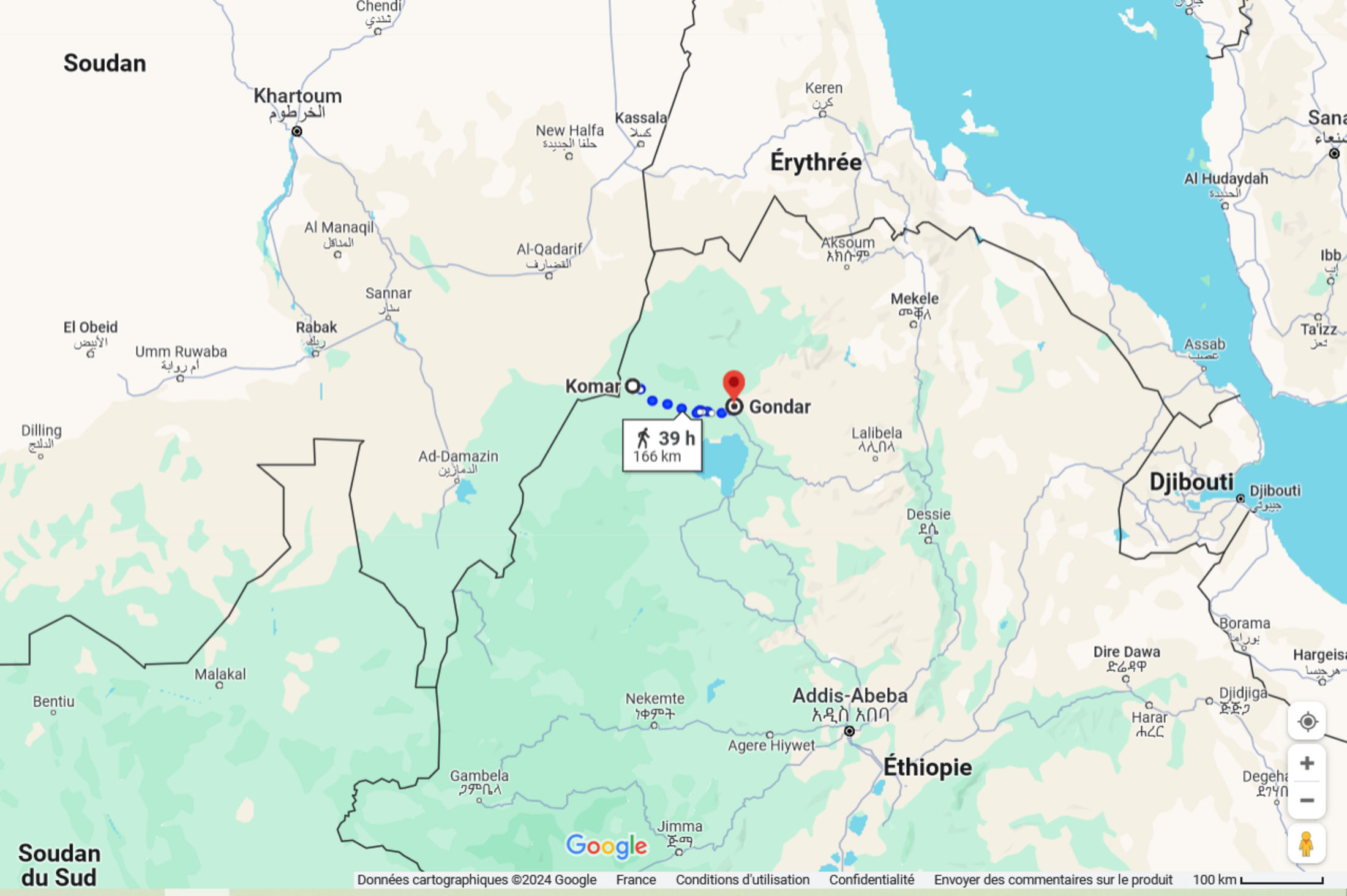 Depuis le début de la guerre au Soudan en avril 2023, plus de 1,6 million de Soudanais·e·s ont fui leur pays. Environ 33 000 d’entre ell·eux ont trouvé refuge en Éthiopie. Les camps de Komar et Olala à la frontière soudano-ethiopienne accueillent des dizaines de milliers de réfugié·e·s qui fuient les combats dans leur pays d'origine. Ces camps de transit a été mis en place par le Service Gouvernemental des Réfugiés et Retournés d'Ethiopie, et le Haut Commissariat aux Réfugiés de l'ONU (HCR).