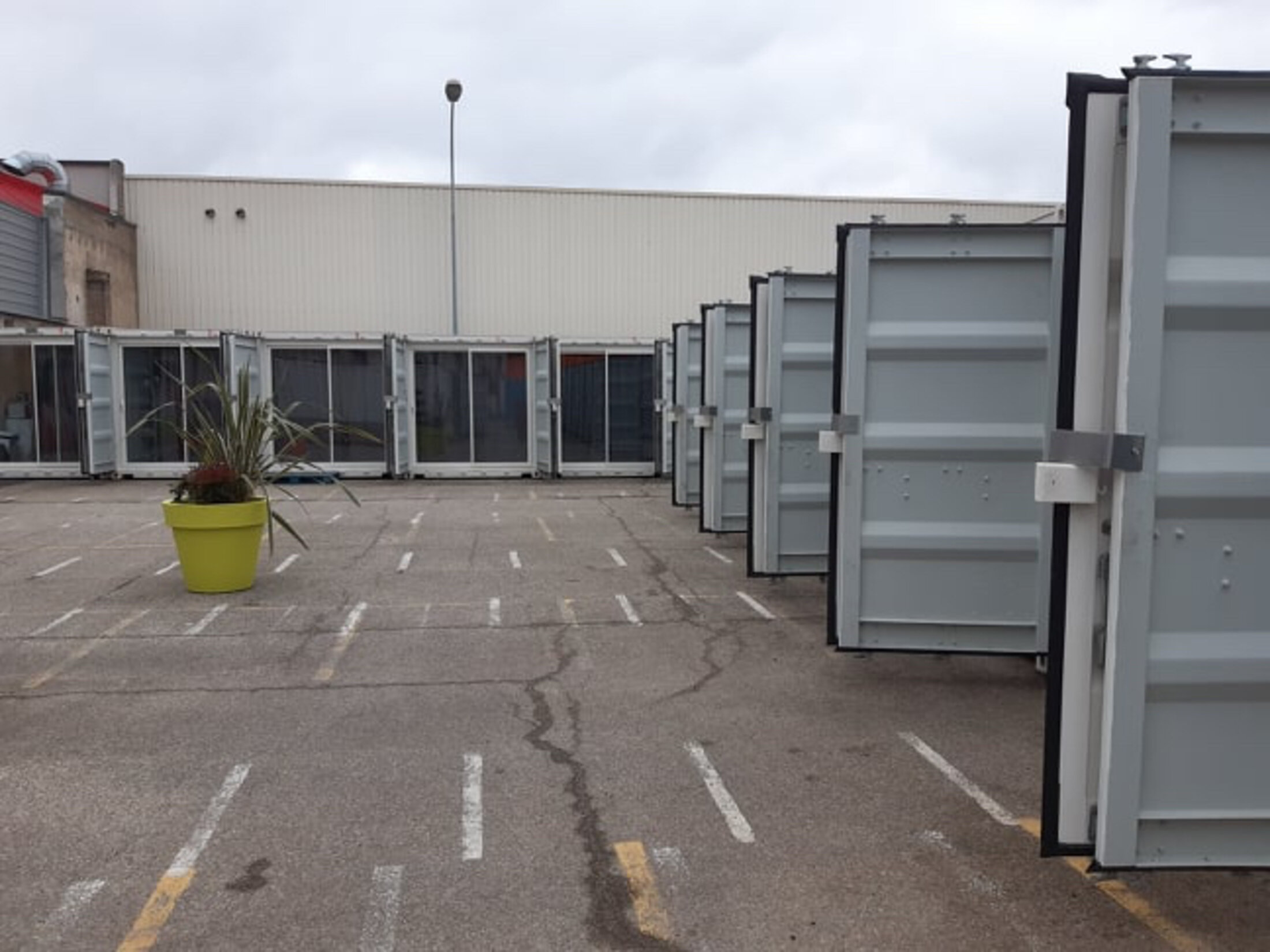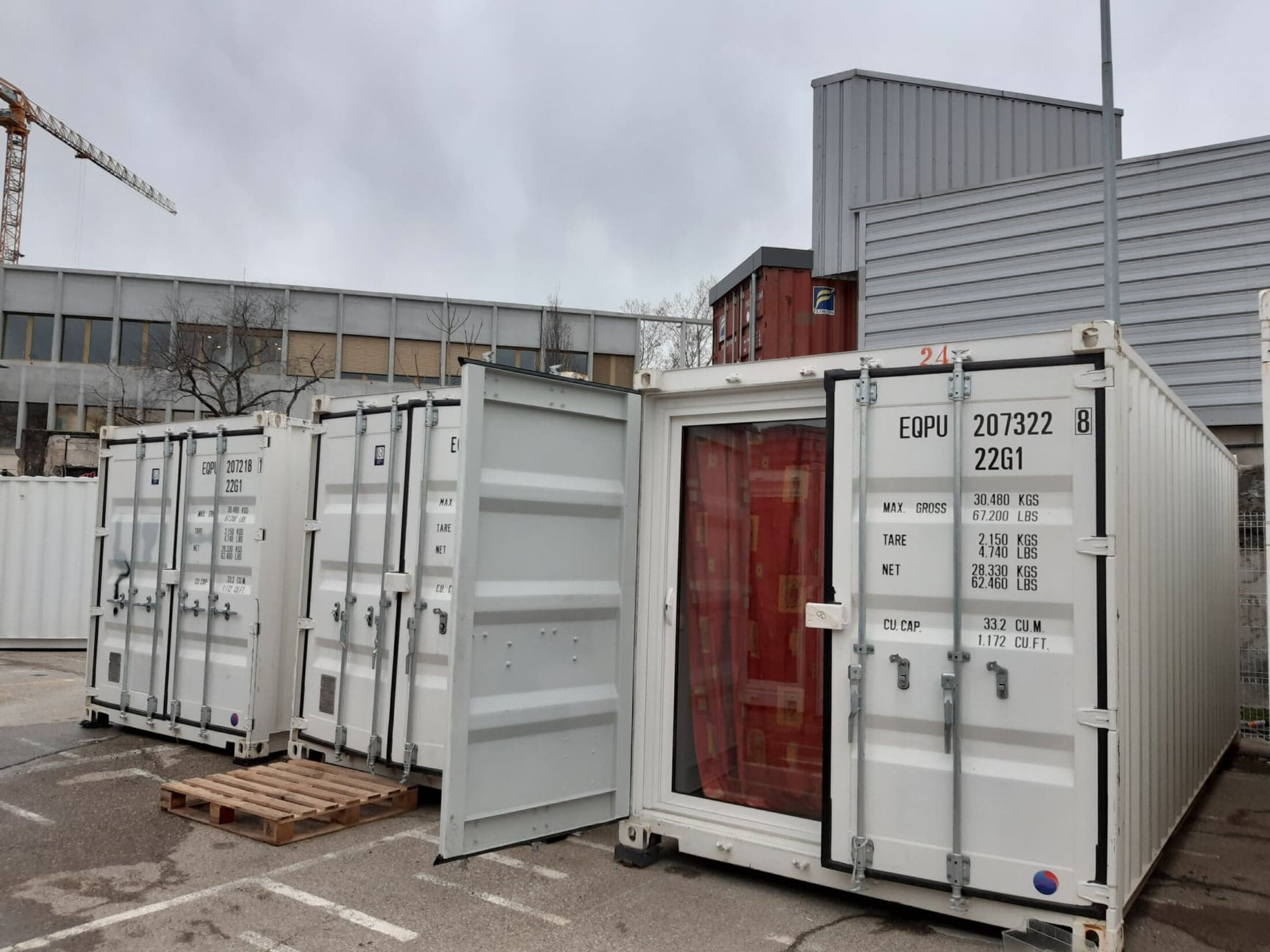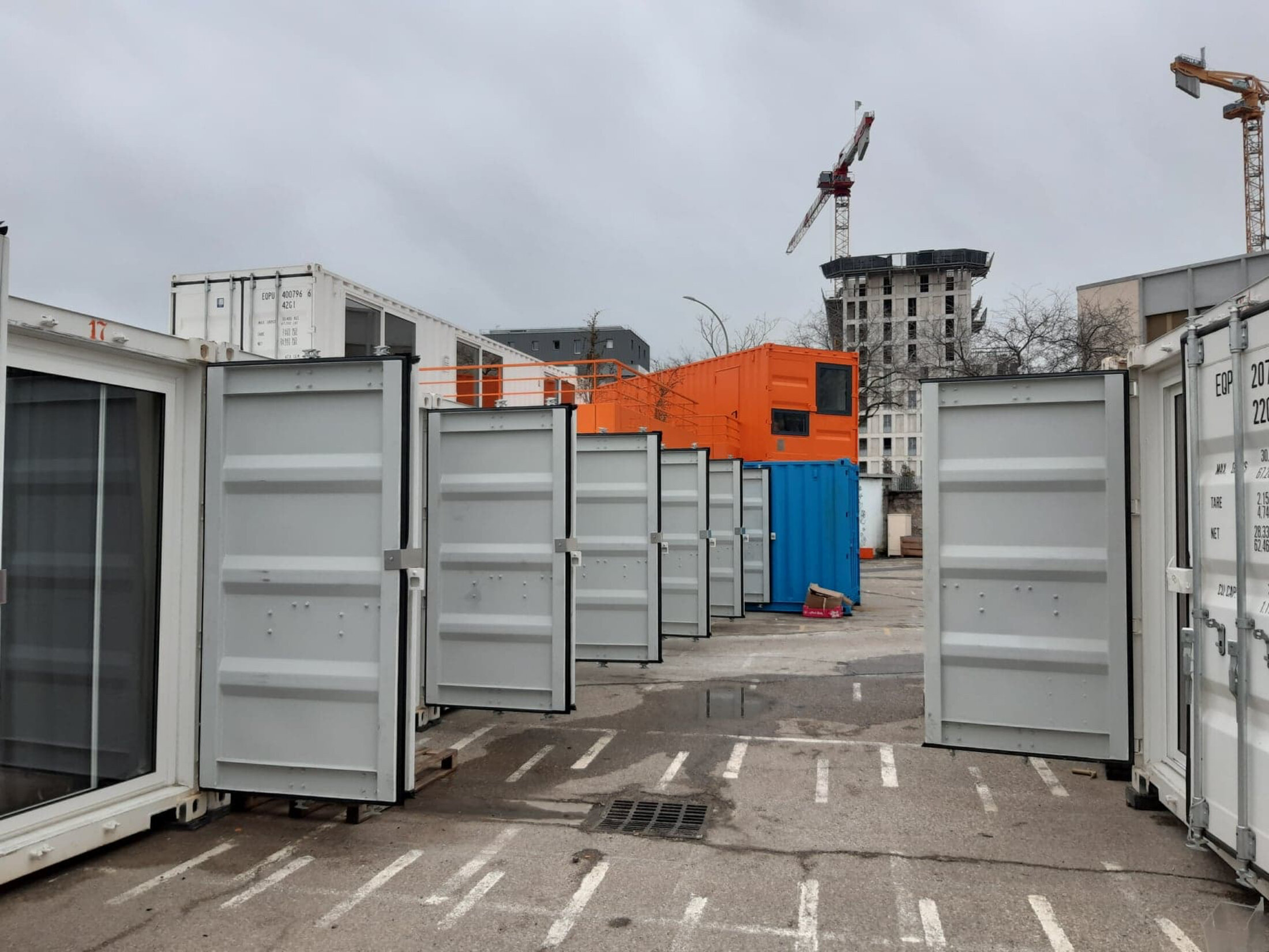 Lyon. Lorsque l'on arrive dans le quartier, c’est une friche industrielle, avec un terrain vague, quelques immeubles, des grues… Et puis une porte dans le mur qui encadre une vingtaine de containers numérotés, alignés sur un parking. C’est ici que Habitat et Humanisme, dans le cadre du contrat d’hébergement des demandeurs d’asile avec l’OFII, a « relogé » les quatre-vingt demandeurs d'asile du centre d’accueil de Masséna en décembre 2019. Dans chaque container, des lits superposés; pas de fenêtre, mais une porte d’entrée à un des bouts du container. Les containers sont étroits, 20 ou 25 mètres carrés environ pour trois à cinq personnes.