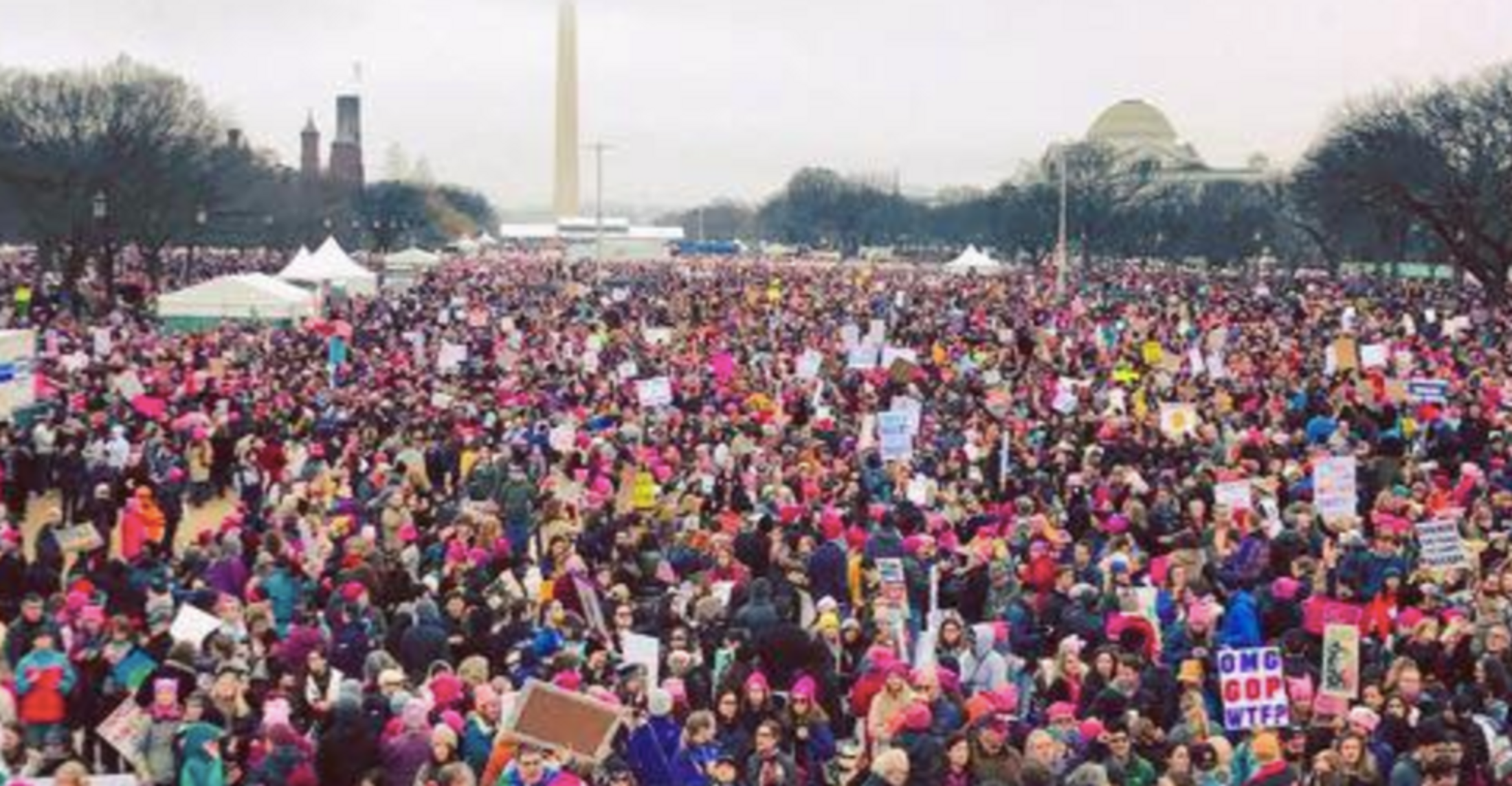 Immense succès des Marches des femmes dans de nombreuses villes (ci-dessus Washington et Paris), le 21 janvier, contre la politique annoncée et déjà amorcée de Donald Trump.