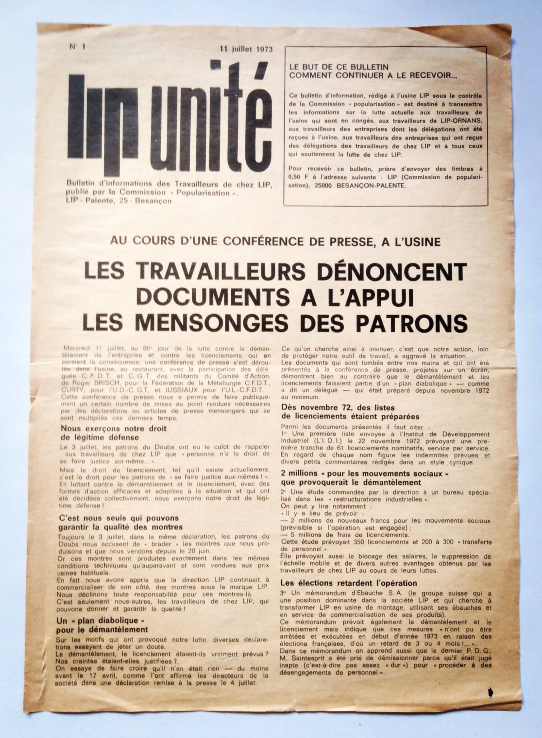 De la lutte sociale des salarié·es de la manufacture horlogère Lip, opposé·es – à partir de 1973 – à leur direction puis aux gouvernements d'union des droites de Pierre Mesmer, notamment, il demeure aujourd'hui nombre d'articles, documentaires ou témoignages directs. Comme celui de Charles Piaget (ancien délégué Cftc puis Cfdt, et militant du PSU en 1973), dont Théo Roumier (SUD éducation) a publié il y a peu un recueil de textes (Éditions du Croquant, 2022), et qui avait lui-même écrit plus tôt On fabrique, on vend, on se paie (Syllepse, 2021).