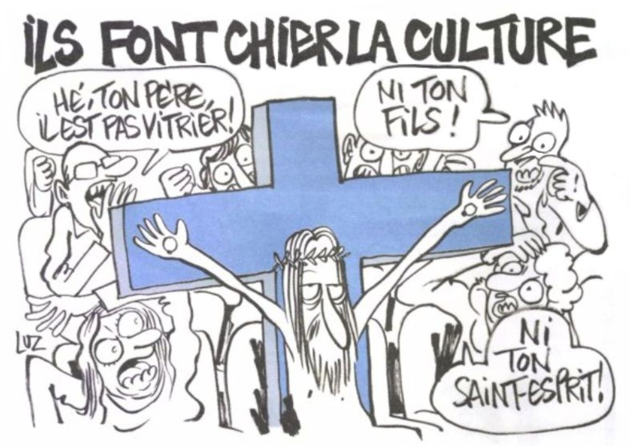 Quand j'mords les sempiternels spasmes sur la ratiche (et la liberté d'avaler ces bondieuseries) qu'occupent tout l'espace, j'peux pas m'empêcher de penser que, peu importe la crèche à bigots d'où c'est que ça vient, ces "superstitions" sont le liseron de la comprenance. C'est tellement invasif que ça te bloque les rouages de la Sorbonne et t'empêche de dissiper la purée de pois qu'on veut te foutre dans le caisson. Ça te barbote ton oxygène, ça squatte ta boîte à gamberge et après, t'as plus la gnaque pour défendre ta galetouse. T'attends gentiment la camarde en croisant les doigts pour qu'elle toque pas trop tôt à ta lourde...