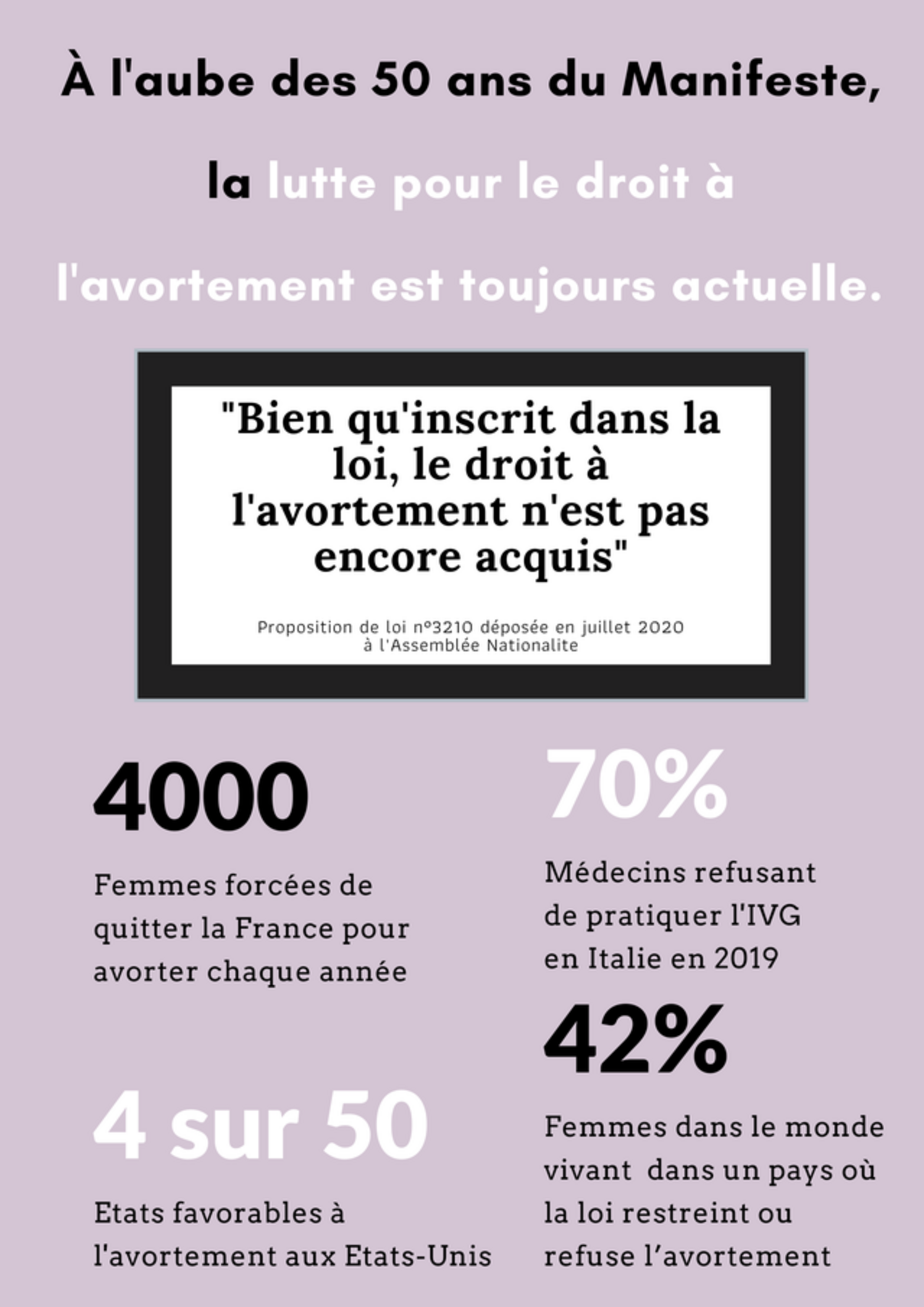 Sauf sans doute celles qui ont fait leur le masochisme qui leur a été inculqué, toutes les femmes désirent être des sujets plutôt que d'être contraintes de porter et de mettre au monde un enfant contre leur gré. Or, dans le monde, le droit à l'avortement sans justification d'ordre médical n'est effectif que pour un nombre limité de femmes.
