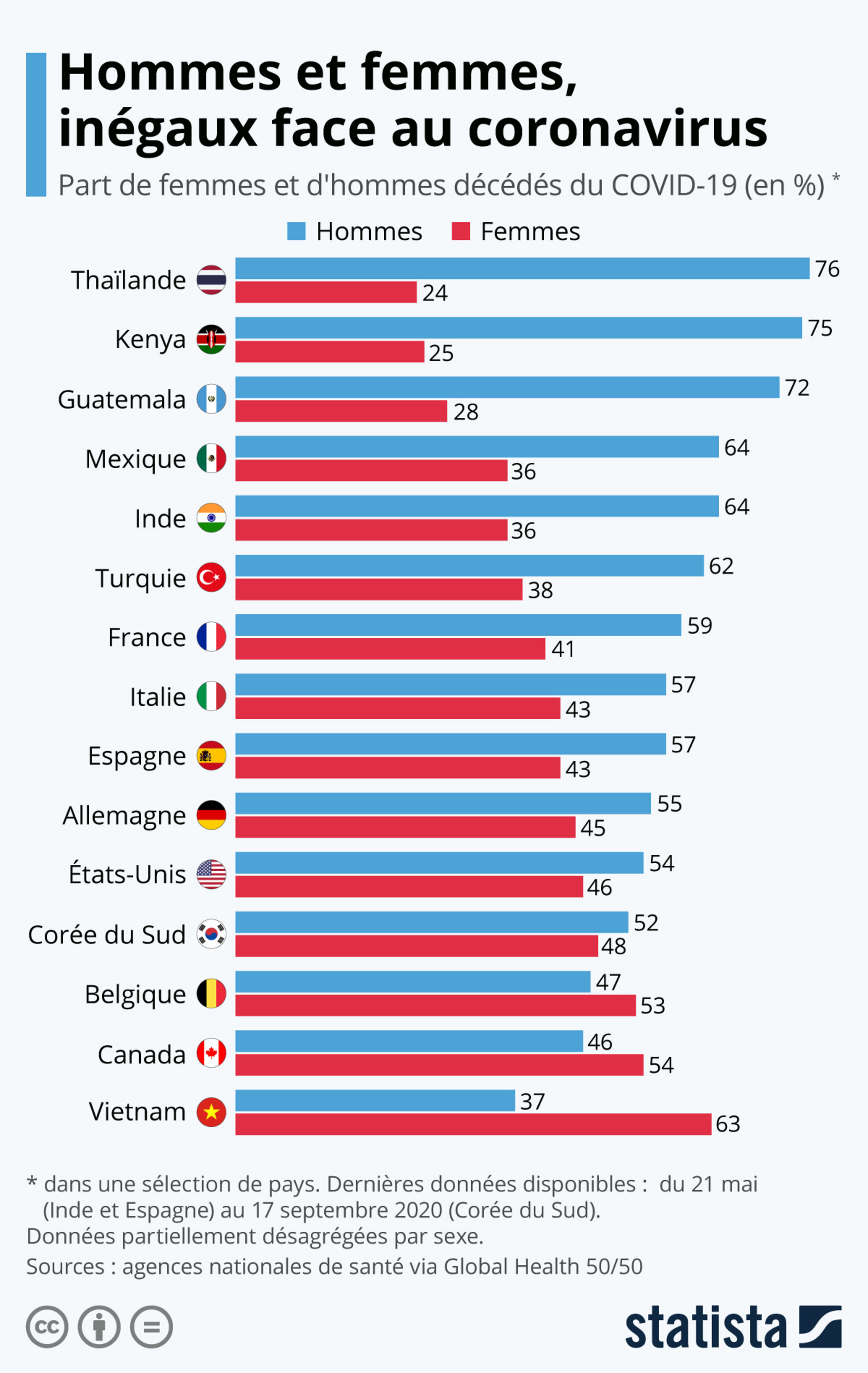 Quoi qu’il en soit, si nous voulons réduire la propagation du Covid en France, il faut d’abord dire clairement, non seulement que les hommes contractent le virus, mais qu’ils en meurent plus souvent que les femmes parce que leur système immunitaire ne fonctionne pas aussi bien que celui des femmes contre les menaces virales. Il faut qu’ils aient peur.