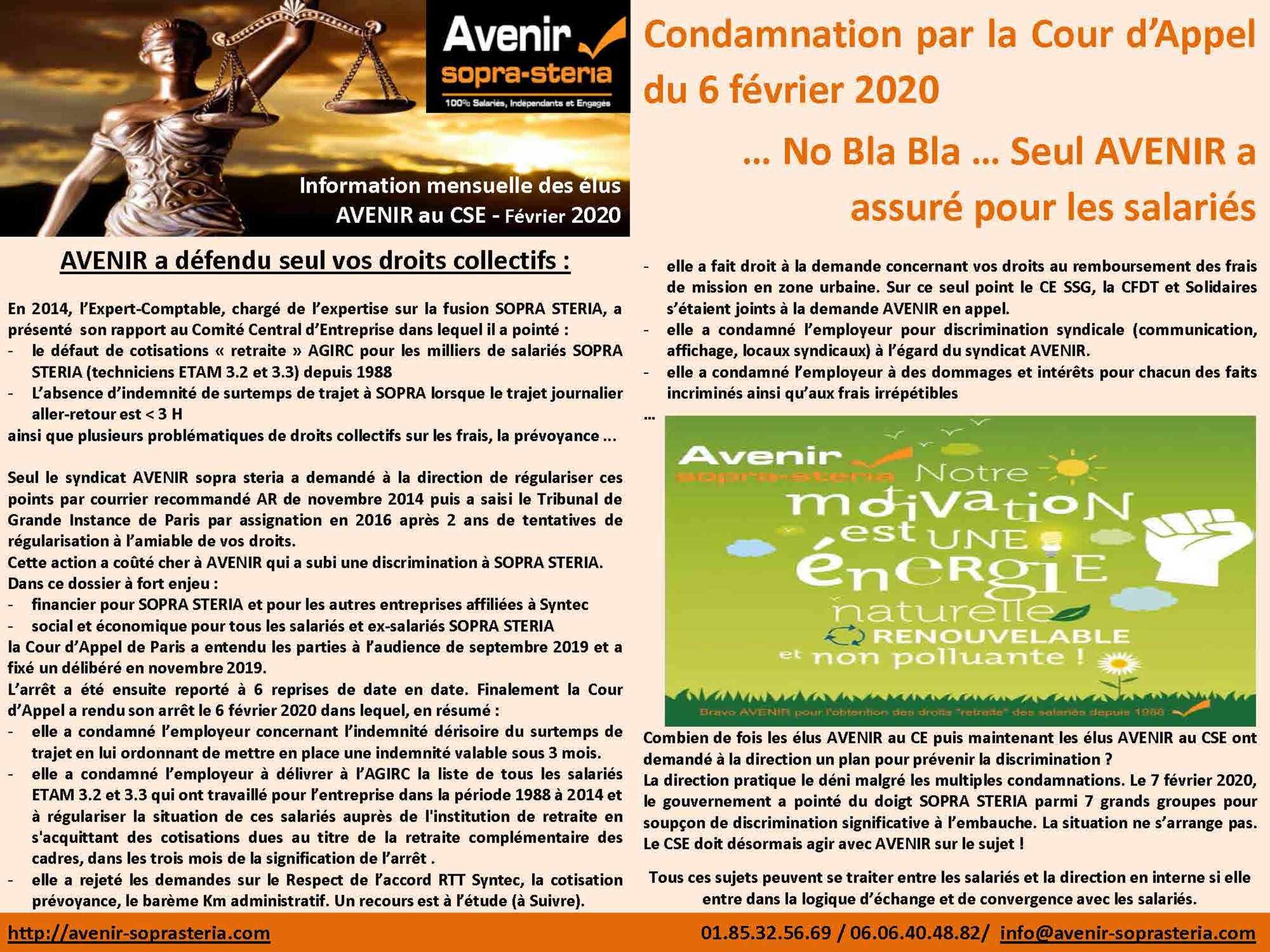 Cette action a coûté cher à AVENIR qui a subi une discrimination à SOPRA STERIA.