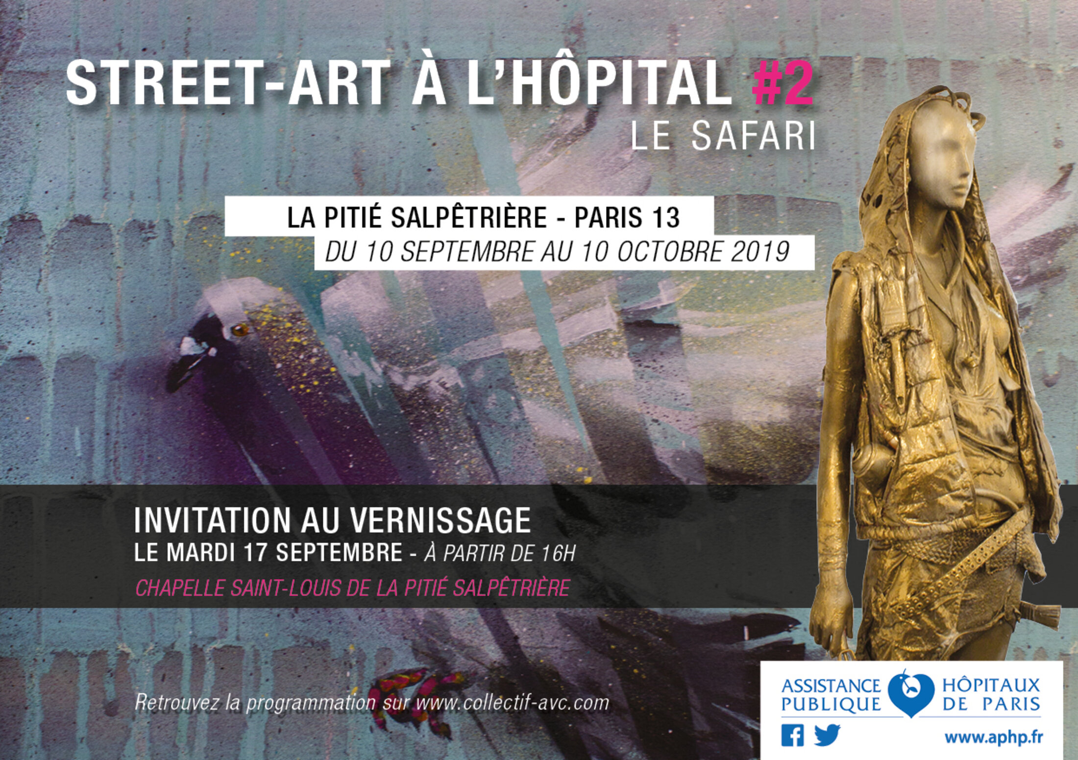 La prochaine exposition du collectif AVC avec qui nous collaborons depuis des années déjà continue son safari d'expositions à la Pitié Salpétriêre.