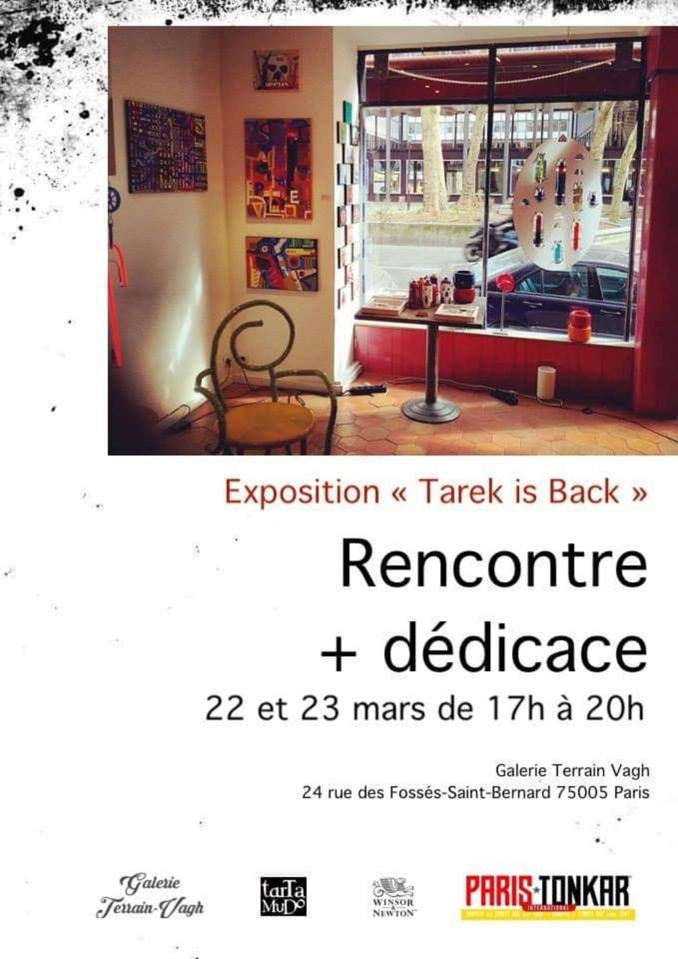 On se retrouve ce vendredi et samedi à la Galerie Terrain-Vagh de 15h à 20h. Dédicace BD + vente de dessins originaux + sérigraphies + photos. Exposition solo | Tarek is back | 24 rue des Fossés Saint Bernard (métro Jussieu ou Cardinal-Lemoine).