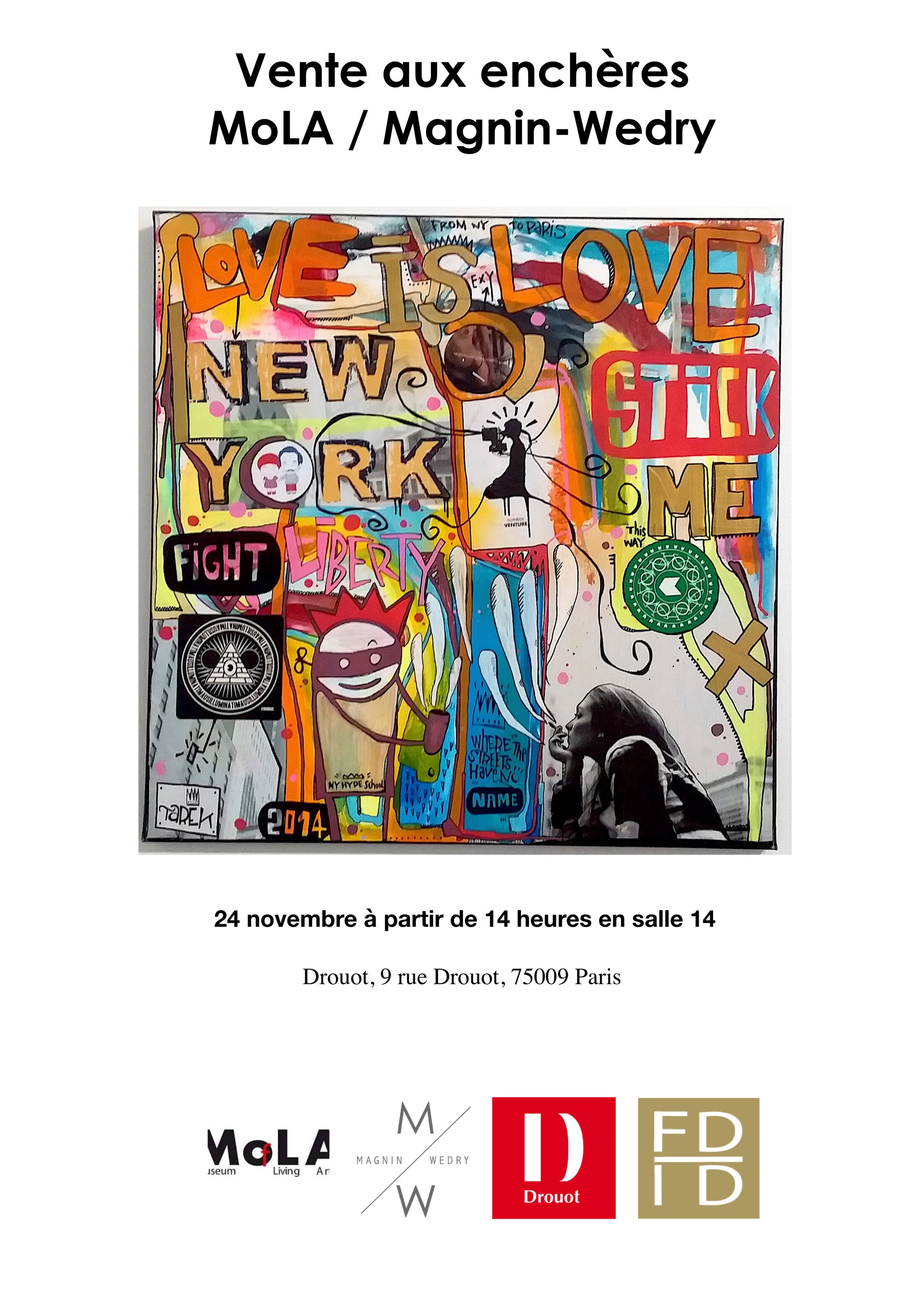 Vente aux enchères à Drouot dans la salle 14 à 14h avec Magnin Wedry et le Musée MoLA le 24 novembre 2018.