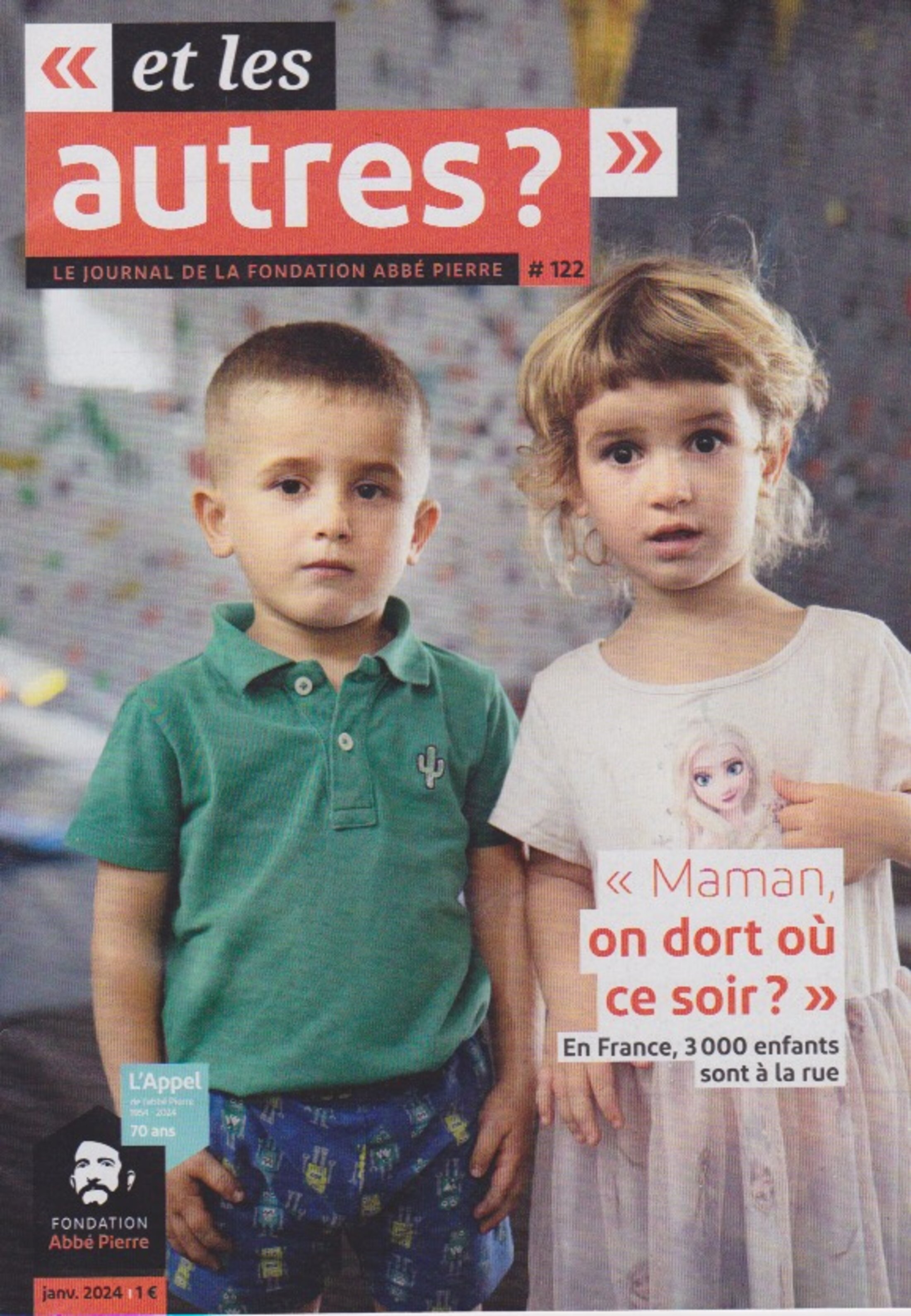 70 ans, après l'appel de l'Abbé Pierre, le 1er Février 1954, la question est à nouveau posée, aggravée. 330 000 sans-abris sont aujourd'hui, et la nuit surtout, à la rue. Le nombre de SDF a doublé en 10 ans.