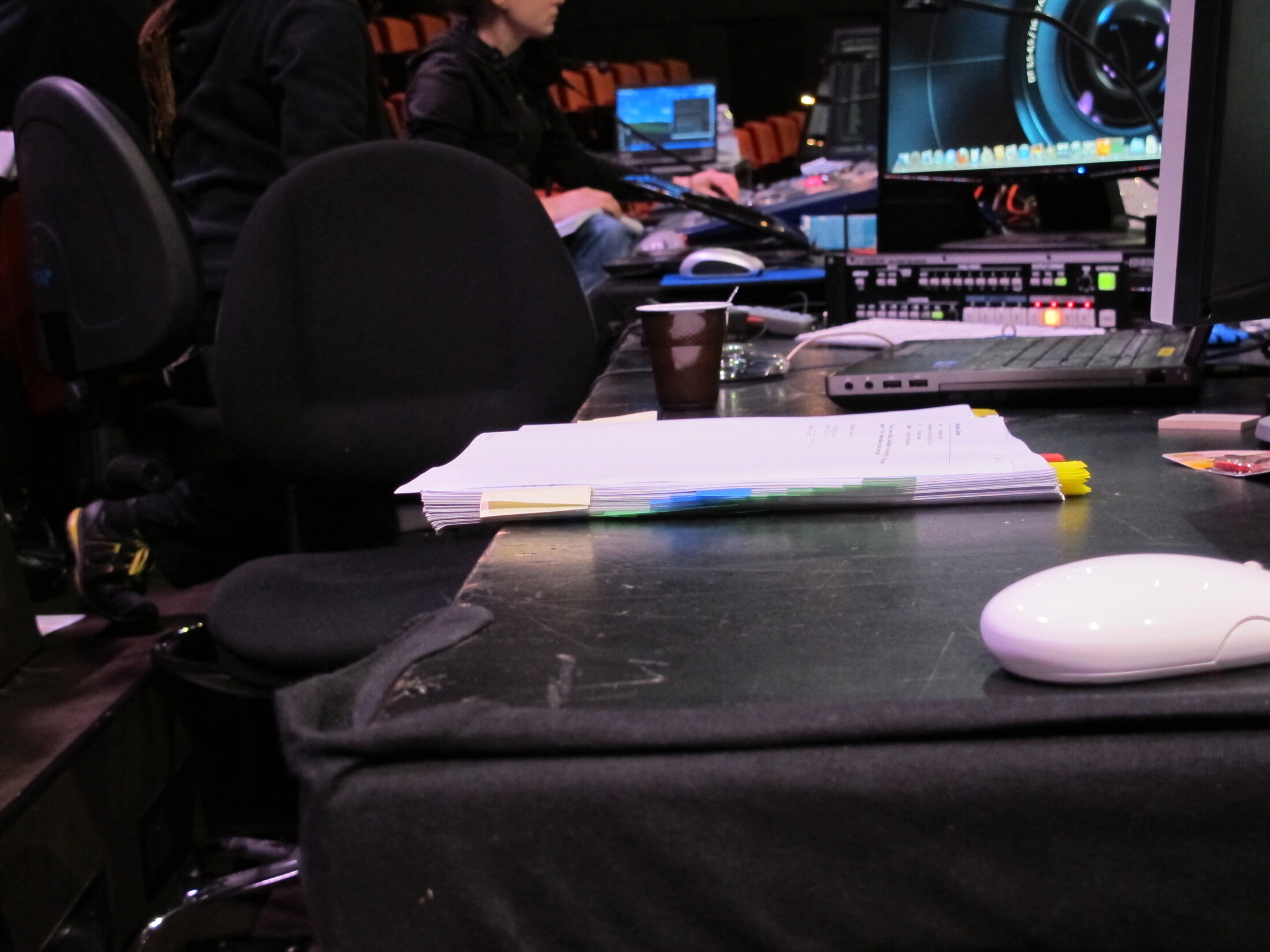 L’assistant effectue un travail indispensable, minutieux, parfois invisible : pendant les répétitions, il s’agit de suivre en permanence le texte, le « souffler », intervenir à toute faillite ou manquement de la mémoire. Il s’agit de consigner dans le cahier de régie l’ossature de la création les placements, déplacements, gestes, intentions, « tops » son, lumière, musique, et vidéo… Véritable mémoire du spectacle, le cahier de régie a notamment été utile lors de la tournée du spectacle à Seaux, et pourra l’être à nouveau lors de ses potentielles reprises ; il est également nécessaire aux audiodescriptions, et aux enregistrements radiophoniques : on pense, entre autres, à celui de France Culture.