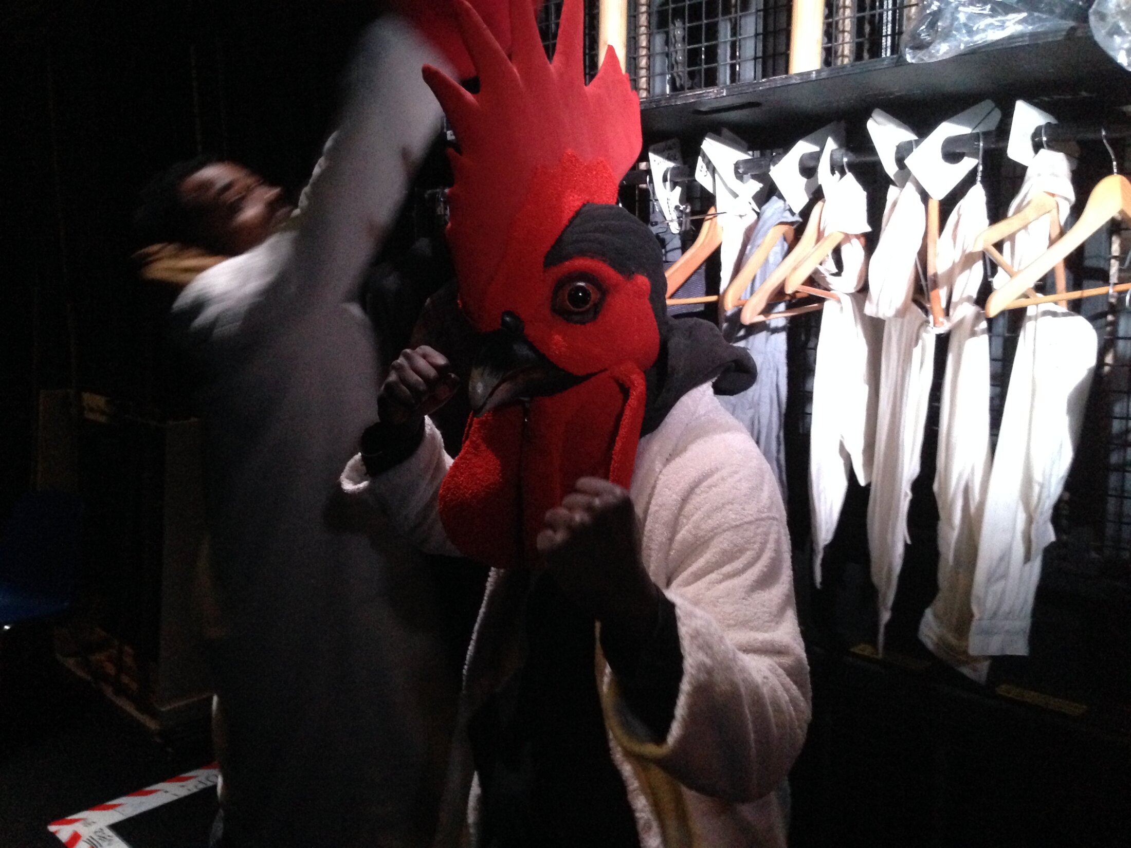L’assistant est l’interlocuteur privilégié du comédien : c’est lui qu’il sollicite pour tout souci pratique ou personnel ; c’est avec lui qu’il travaille de manière plus particulière et précise. Julie a notamment œuvré avec le chœur villeurbannais et, entre autres, à l’orchestration de la scène d’ouverture : le combat de coq, le jeu, le port du masque et l’aisance physique qu’il exige. Les Italiennes sont également des moments d’intimité, propices à une réelle rencontre avec les comédiens – en petits groupes ou individuellement, elles permettent de renforcer la mémorisation, de chercher des intentions ou des lectures possibles du texte, en détail, en collaboration. On pense par exemple à la fin du troisième acte, où Christophe, halluciné, recouvre ses forces, grâce aux incantations des trois hounsis qui l’entourent : chacune ayant traduit ses répliques en sa langue dialectale, les comédiennes ne se comprenaient pas - l’enchaînement des répliques se faisait alors par le son, et non par le sens, exigeant une concentration et une attention particulières, et des répétitions multipliées.
