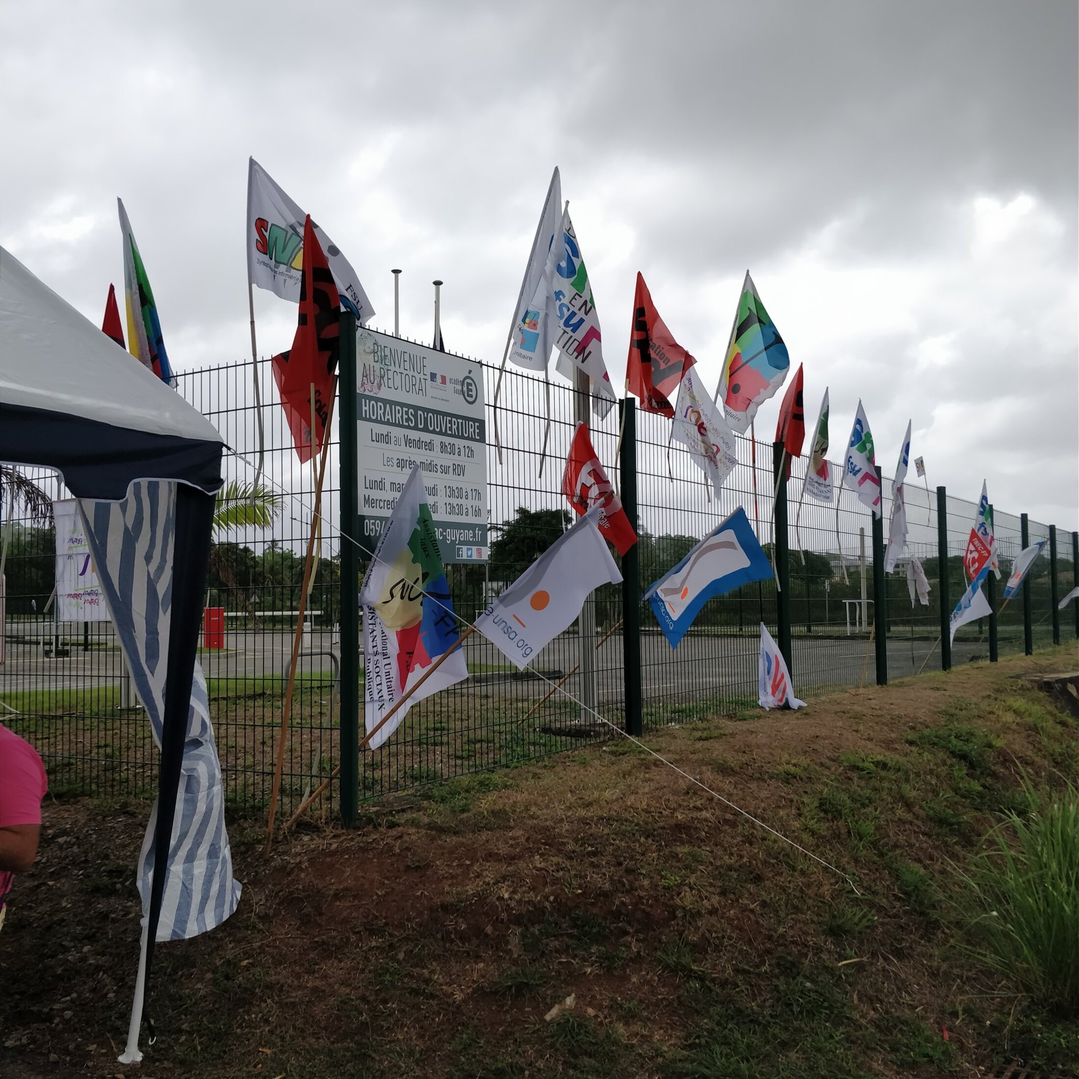 Ce 15 novembre la grève est toujours au rendez-vous en Guyane. Les drapeaux des différentes organisations syndicales restent fièrement plantés aux grilles de l’institution, défiant un Recteur dont le mépris caractérisé semble la principale aptitude.