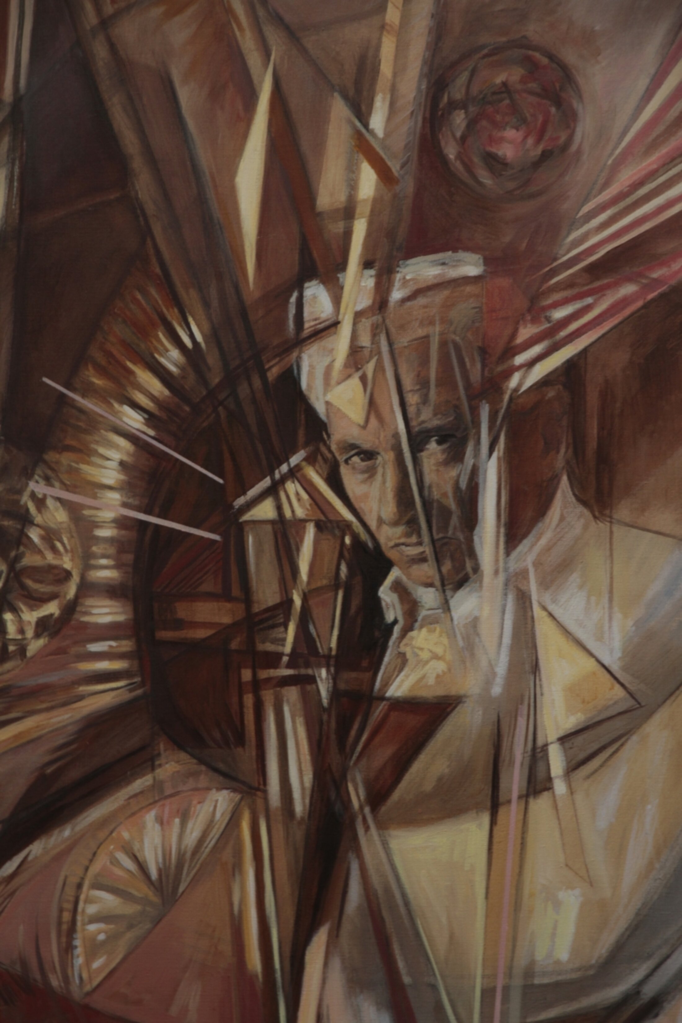 Inspiré par ces premiers documents, j’avais terminé mon DEA2 avec Jacques lorsque je lui offris le premier portrait, en juin 1995, réalisé avec Monique depuis 1993. Il a encouragé les peintres en leur donnant une très riche documentation photographique, qu’il nous a laissée prélever dans son fameux grenier bibliothèque, son « sublime » comme il l’appelle, photographies qui ont inspiré une première série de portraits. La peinture des artistes n’étant pas celle des institutions artistiques habituelles, Jacques nous proposa d’exposer cette première série à l’occasion d’une soirée déjà prévue au théâtre de l’Odéon avec Jacob Rogozinski, en février 1996. Suite à cette exposition très éphémère dans la salle du théâtre3, nous avons participé à la Décade de Cerisy de 1997 au cours de laquelle fut présentée une série plus complète accompagnée d’une conférence en présence de Jacques4. Une exposition inaugurée par lui à l’Université de Nanterre Paris X en 1998 montra de nouveaux développements avec notamment des sculptures et un début de travaux numériques. Durant la même période nous prîmes des vues photographiques dans la maison du philosophe à Ris-Orangis. Il y eut la publication des actes de Cerisy en 1999 et la soutenance de thèse en 2000, avec Jacques dans le jury, thèse publiée en 2004, puis le travail sur l’édition française de Marx & Sons en 20025, enfin nous avons participé à la décade de 2002, lors d’une soirée, avec des peintures numériques sur le thème des enfants, une décade de Cerisy durant laquelle des photographies numériques des participants de Cerisy furent aussi réalisées, et retouchées artistiquement sur place. Une toile figure au château de Cerisy depuis 2000. A la librairie des Presses Universitaires de France, (aujourd’hui Place de la Sorbonne)*, j’avais organisé une soirée-débat en 2001, avec Jacques et Etienne Balibar sur le thème « Philosophie et mondialisation », débat au cours duquel il me fut possible d’insister sur la question de l’art. Alors que la maladie de Jacques s’était déjà déclarée, nous fîmes une présentation de ses livres dans la même librairie, accompagnée de portraits qui restèrent en place de novembre 2003 à février 2004, et qu’il a appréciée.