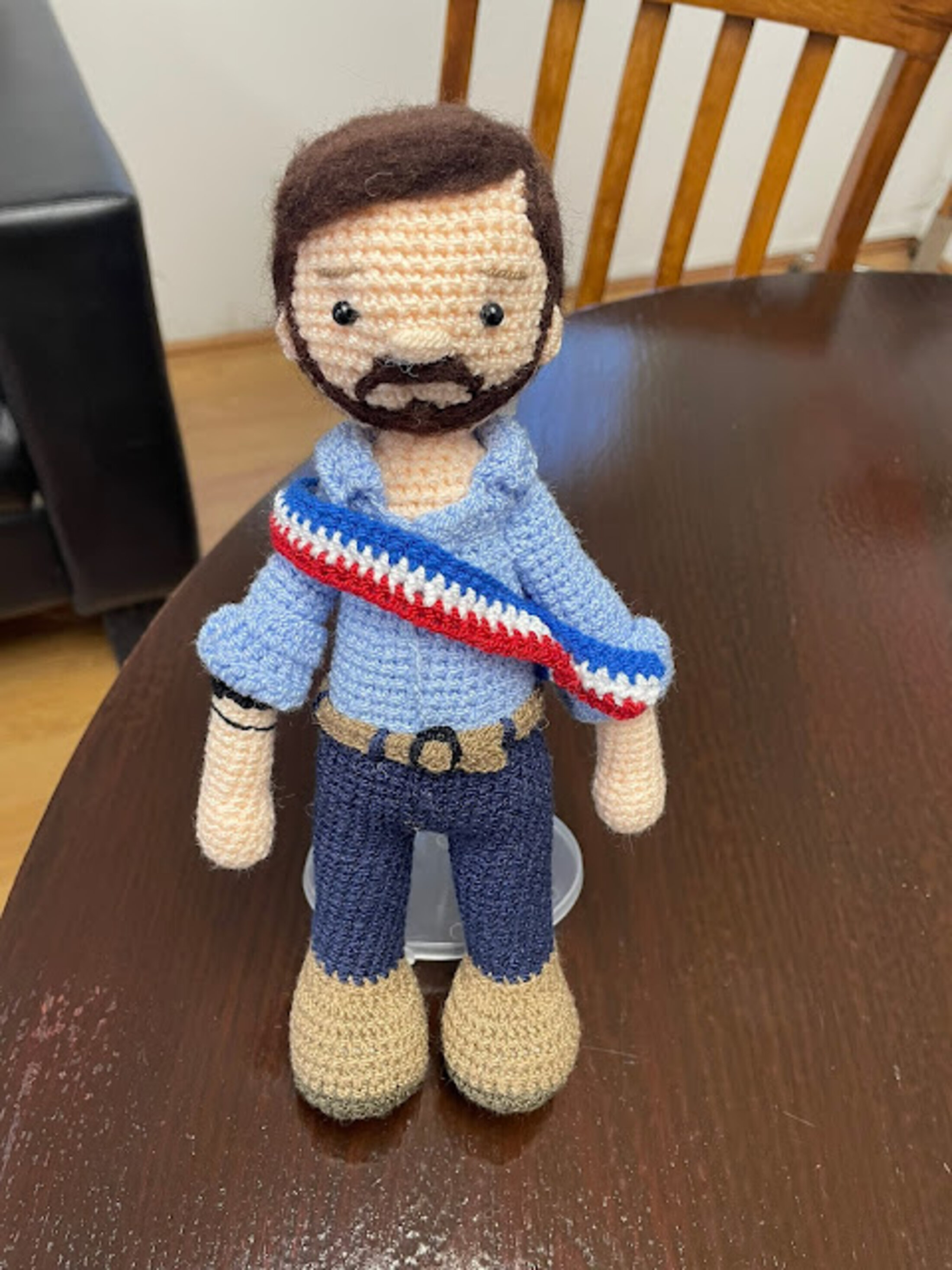 Un “gabrielín » (petit Gabriel) en laine créé par l’entreprise artisanale Ñuke Lanas, que le maire de Maipú, Tomás Vodanovic, avait promis d’offrir à celui qui était alors candidat en 2021