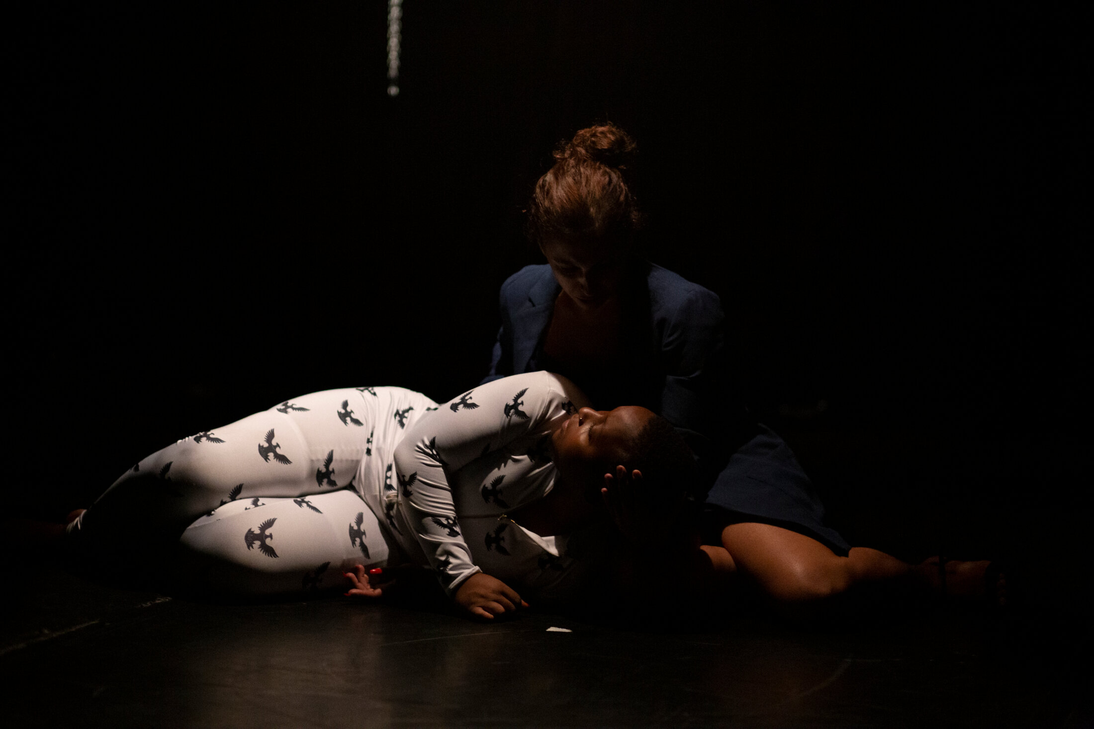 Tentative de Bérékia Yergeau de décrypter à sa manière les rouages d’un système qui enrichit tout le monde au premier abord mais qui très vite montre les limites de sa propre perversion. Une jeune fille tentée par l’argent facile, un père et une mère dans le désarroi quand ils apprennent ce que leur fille a fait, une mère courage s’envolant pour sauver sa fille pour un Cayenne-Orly, la peur et les boulettes de coke au ventre. Et à l’arrivée, la même corruption qui s’empare d’elle. Un père incapable de préserver la cohésion de l’intégrité familiale. Bref, ce sont des archétypes évoluant dans une scénographie jouant habilement de cages dorées suspendues au dessus de nous : symboles d’une liberté perdue.