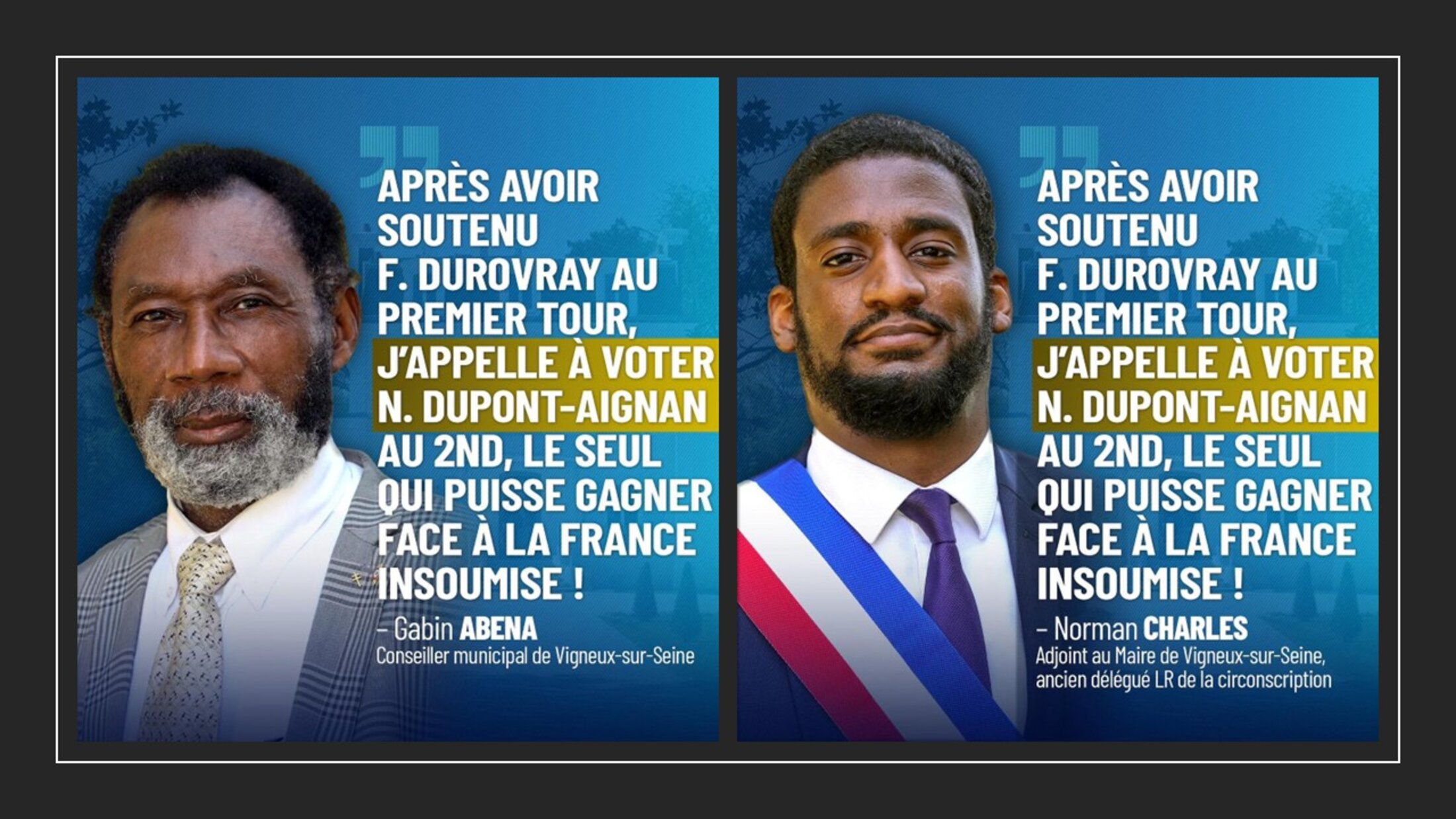 Mais depuis, ce ne sont plus des départs, c’est une désertion. Aux dernières élections législatives, alors que Thomas Chazal tentait de faire bloc derrière François Durovray, plusieurs membres de son équipe ont choisi d'autres camps. Gabin Abena et Norman Charles se sont rangés derrière Nicolas Dupont-Aignan.