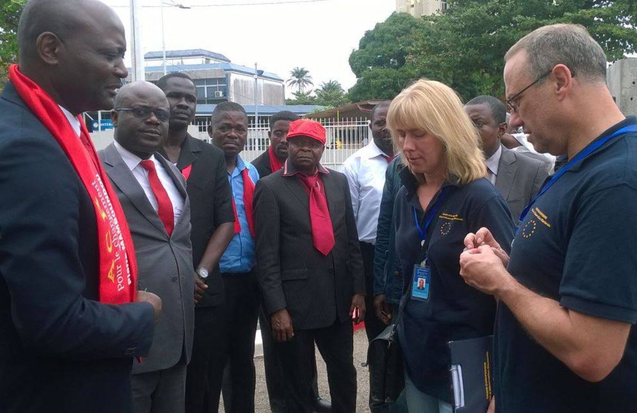 Avant de débuter le meeting, place du Château à Port-Gentil, Bruno Ben Moubmaba a pris un moment pour rencontrer les populations. Il a ensuité salué le gouverneur de la Province puis échangé avec les représentants de l'Union Européenne.