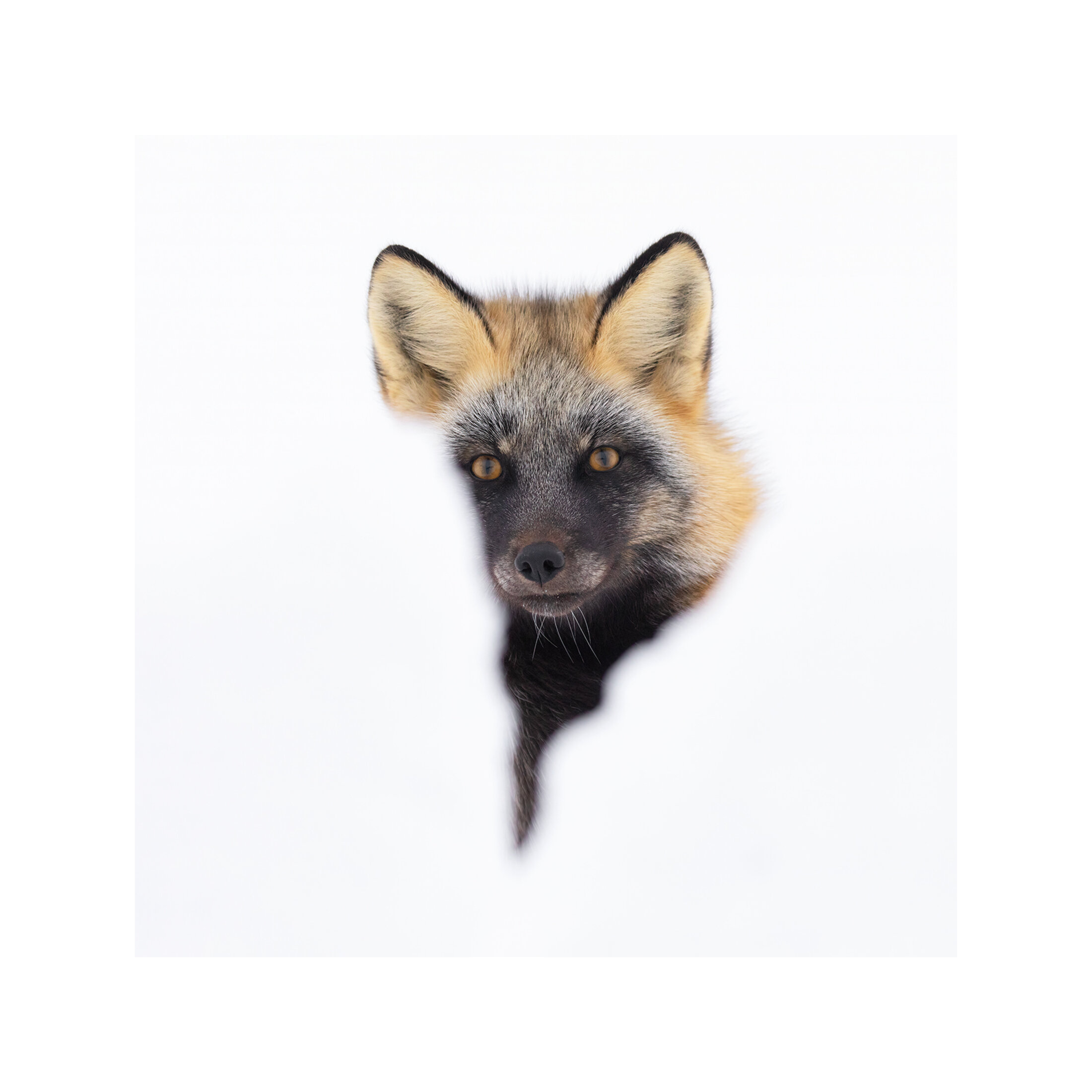 Jérémie Villet cherche le renard polaire, le lapin ou la chèvre des neiges, l'harfang des neiges...blanc sur blanc, deux yeux, des cornes, des bois de rennes...et la magie opère.