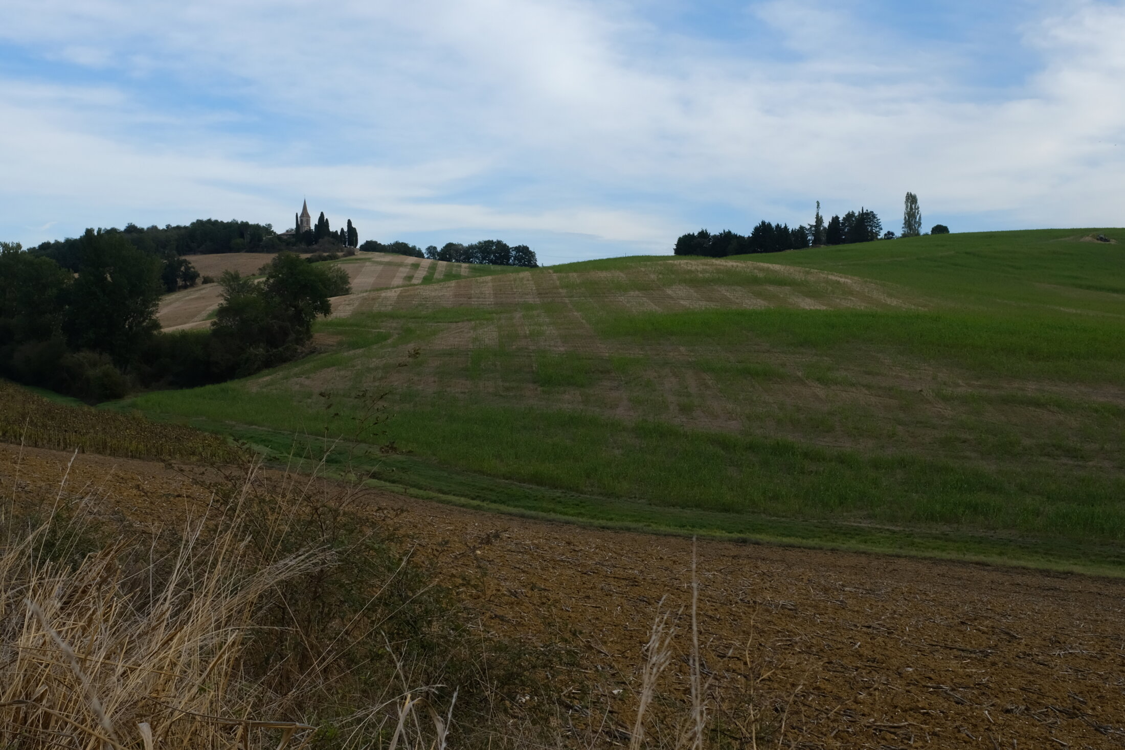 Moissonnés de frais, à flanc de vallons les champs attendent avec grande impatience le temps des labours. Ici quelques tournesols intrépides s’aventurent à travers la nudité des campagnes tandis que les plus vertueux baissent casaque, grillés par l’intensité des grosses chaleurs. Là bas, au pourtour des chemins tortueux, parmi les grandes allées rectilignes de quenouilles de maïs, le vent s’infiltre en un bruissement confus. Échos de ça et de là de la complainte d’un poème épique au plus fort de sa symphonie.