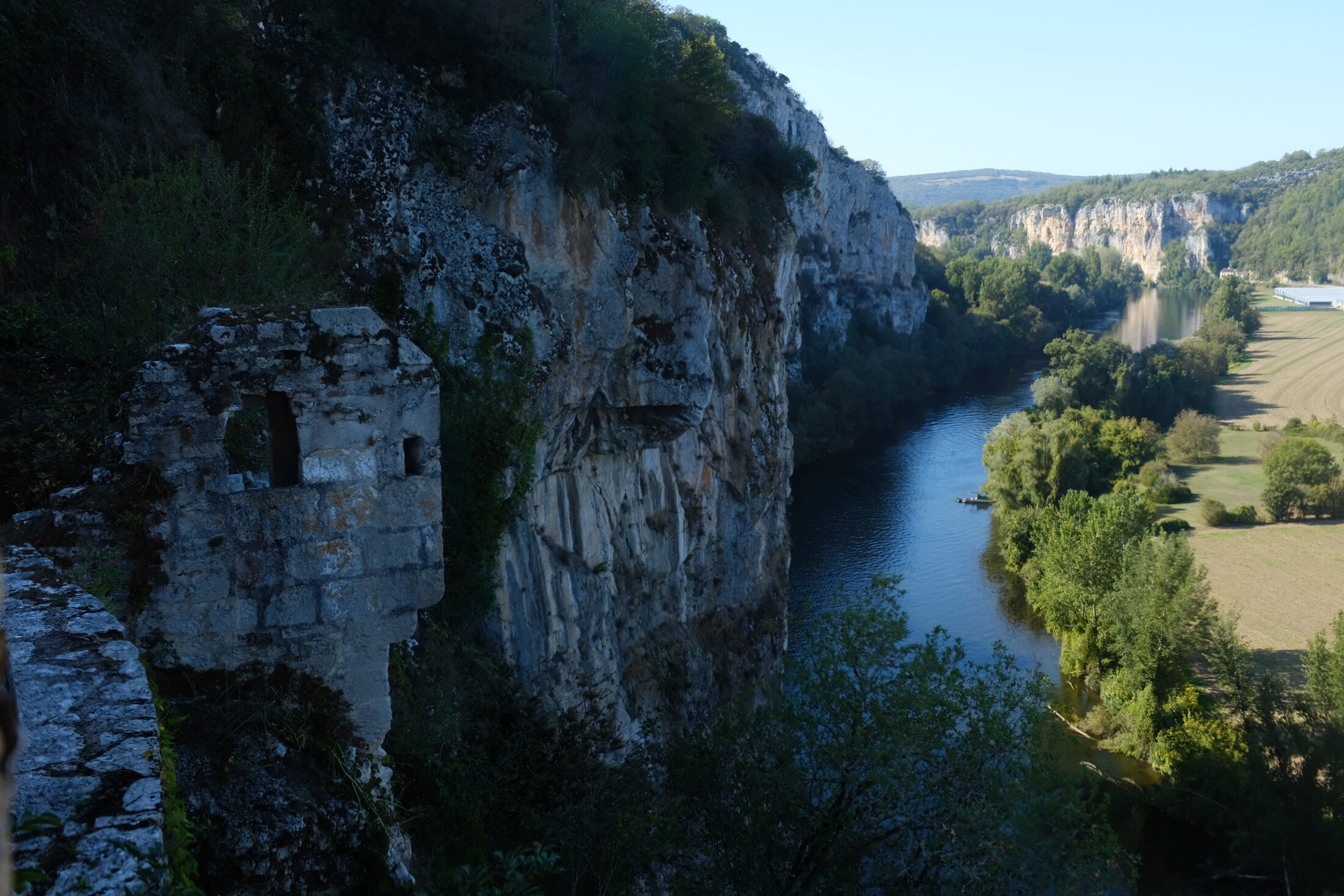Pavés de calades de galets patinées par la rugosité des temps, les petites ruelles descendent à pic jusqu’au pied de la falaise abrupte où ondule en douceur le cours du Lot. Au pied du rocher élimé par la pétulance des vents environnants, moulins, ports, écluses et barrage parsèment le paysage fluvial. Taillés à même la roche, les anciens chemins de halage révèlent le faste d’une activité batelière florissante.