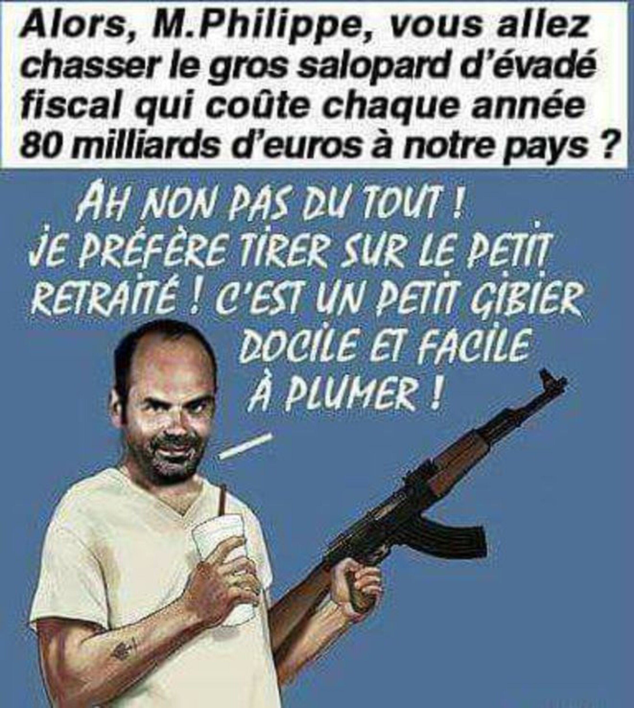 Ce n’est encore pas assez pour les Micmacroniens : la volonté du gouvernement de faire une réforme systémique, c’est-à-dire de changer tout le système de retraite en un régime universel, a pour but de baisser les retraites par rapport aux actifs, non pas en 20 ou 30 ans, mais en une dizaine d’années. Avec toujours pour premier critère : baisser la dépense. Le découplage des pensions et de l’inflation, le quasi-gel des pensions en 2019-2020 et l’augmentation non compensée de la CSG représentent une baisse de 4 % de pouvoir d’achat. Sur les 307 milliards que représentent le montant total des pensions, ça fait de la thune, plus d’une douzaine de milliards ! Volés aux retraités car la pension est une part de salaire différée.