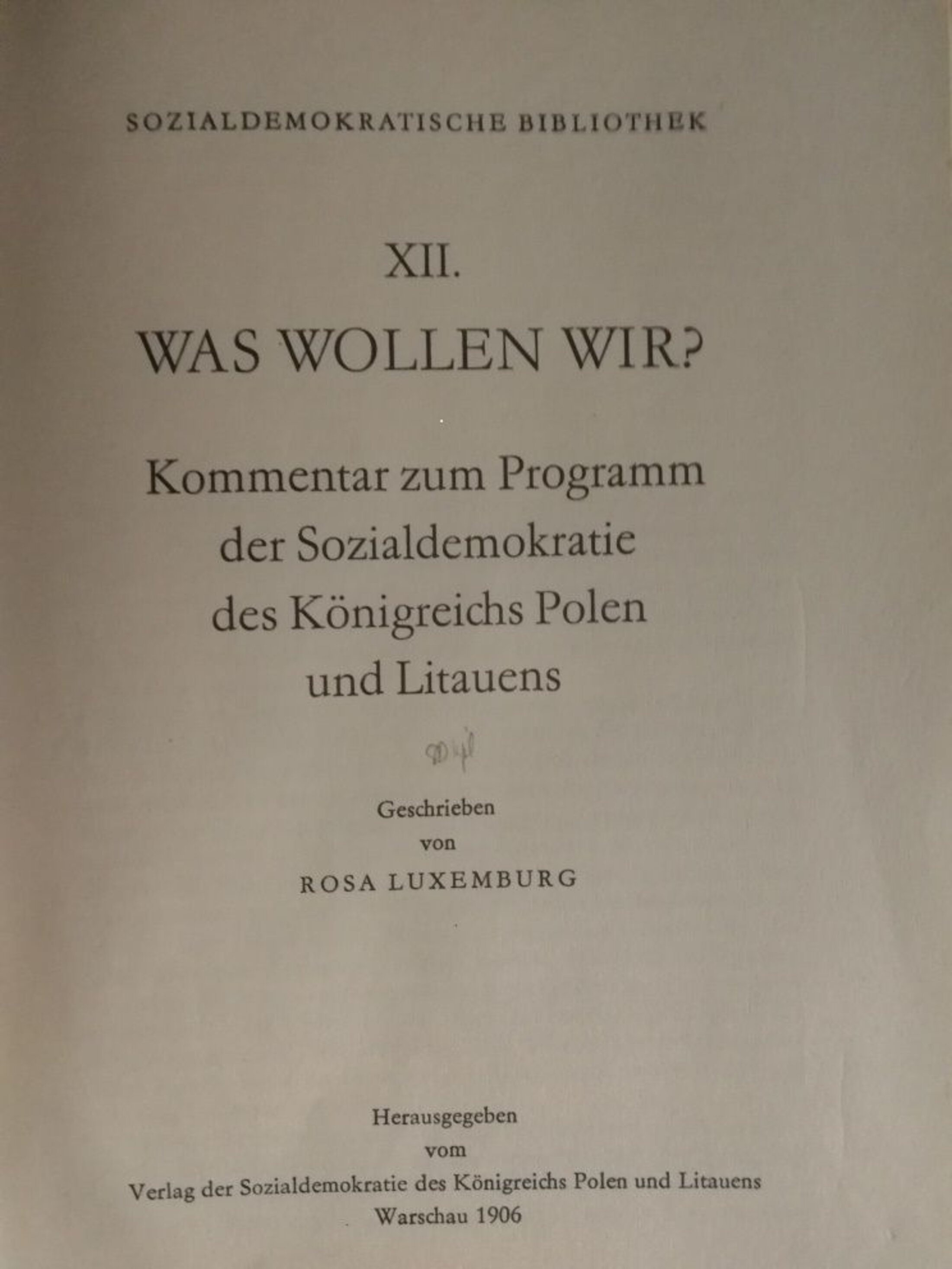 Rosa Luxemburg: Was wollen wir? Kommentar zum Programm der Sozialdemokratie des Königreichs Polen und Litauens [Róża Luksemburg: Czego chcemy? Komentarz do Programu Socjaldemokracji Królestwa Polskiego i Litwy, Warschau 1906. Herausgegeben vom Verlag der Sozialdemokratie des Königreichs Polen und Litauens. Nach Gesammelte Werke, Band 2, Berlin 1972, S. 37-8