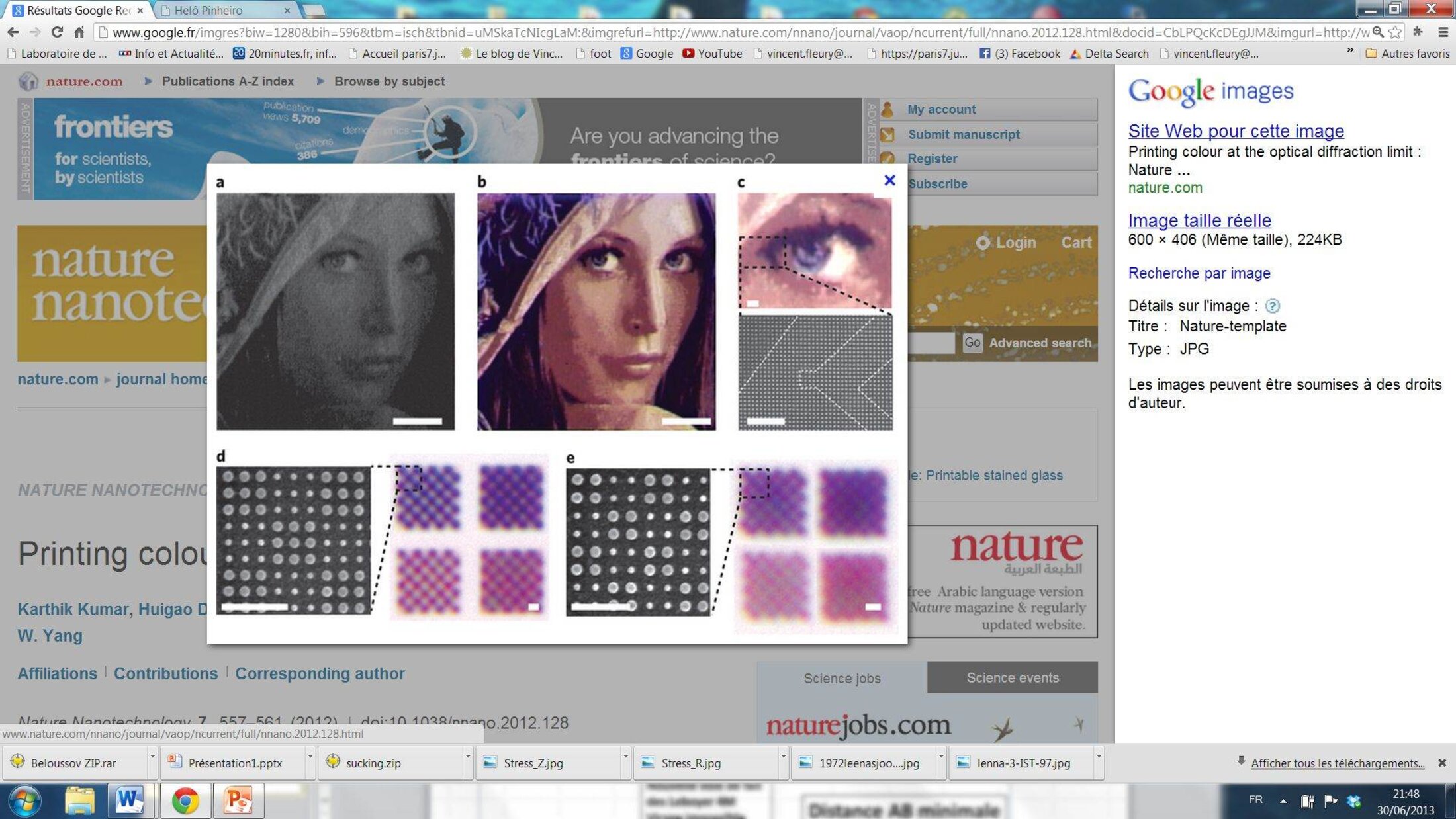 Le visage de Lena est donc devenu le plus petit visage jamais imprimé en couleur : il fait le diamètre d’un cheveu, et apparut grossi au microscope dans la célèbre revue Nature (nanotechnologies).