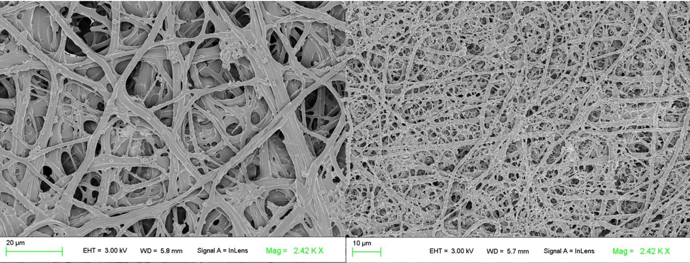 14-Sur les deux photographies suivantes en microscopie électronique (© CNRS/MSC) on distingue très bien la différence entre la structure microscopique :