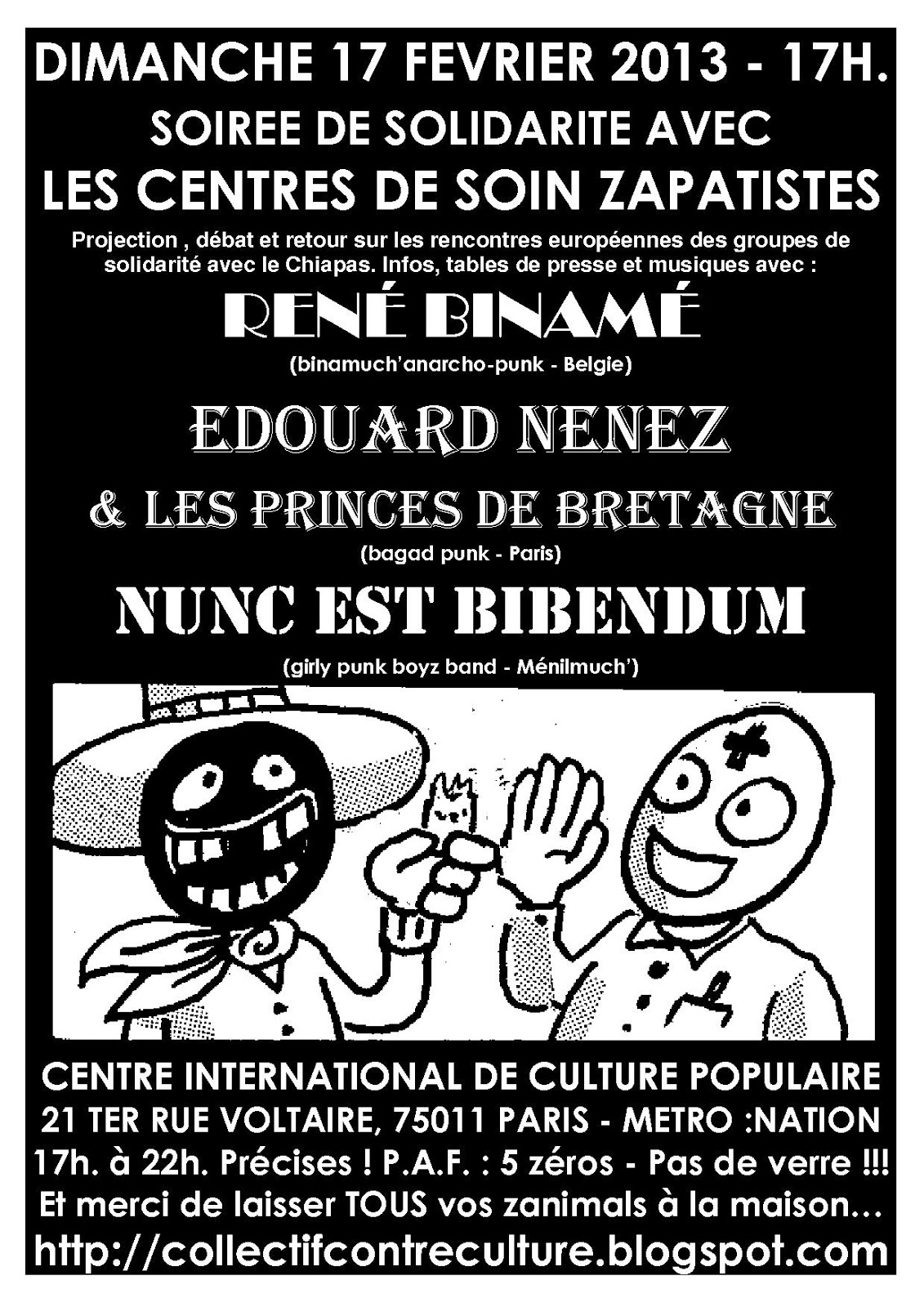 Projection, débat et retour sur les rencontres européennes de solidarité avec le Chiapas, puis concert avec :