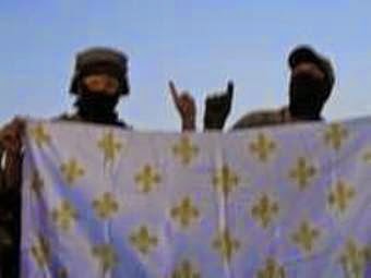 Commentaire qui accompagne cet article : Soldats ukrainiens tenant un drapeau royaliste de France avec Fleur-de-Lys avec lequel les rebelles de la Vendée se sont battus contre la terreur jacobine de la Révolution française et aujourd'hui les défenseurs ukrainiens de leurs terres, de la culture ; un peuple en lutte contre les étatistes de gauche et les chiens de garde de la Carthage multiculturelle (la Fédération de Russie), les néo-bolcheviks, les mercenaires de Kadirov [NDR : dirigeant de la Tchétchénie] et les antifascistes de la soi-disant "Novorossia".