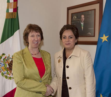 Catherine Ashton avec la ministre des affaires étrangères du Mexique, Patricia Espinosa