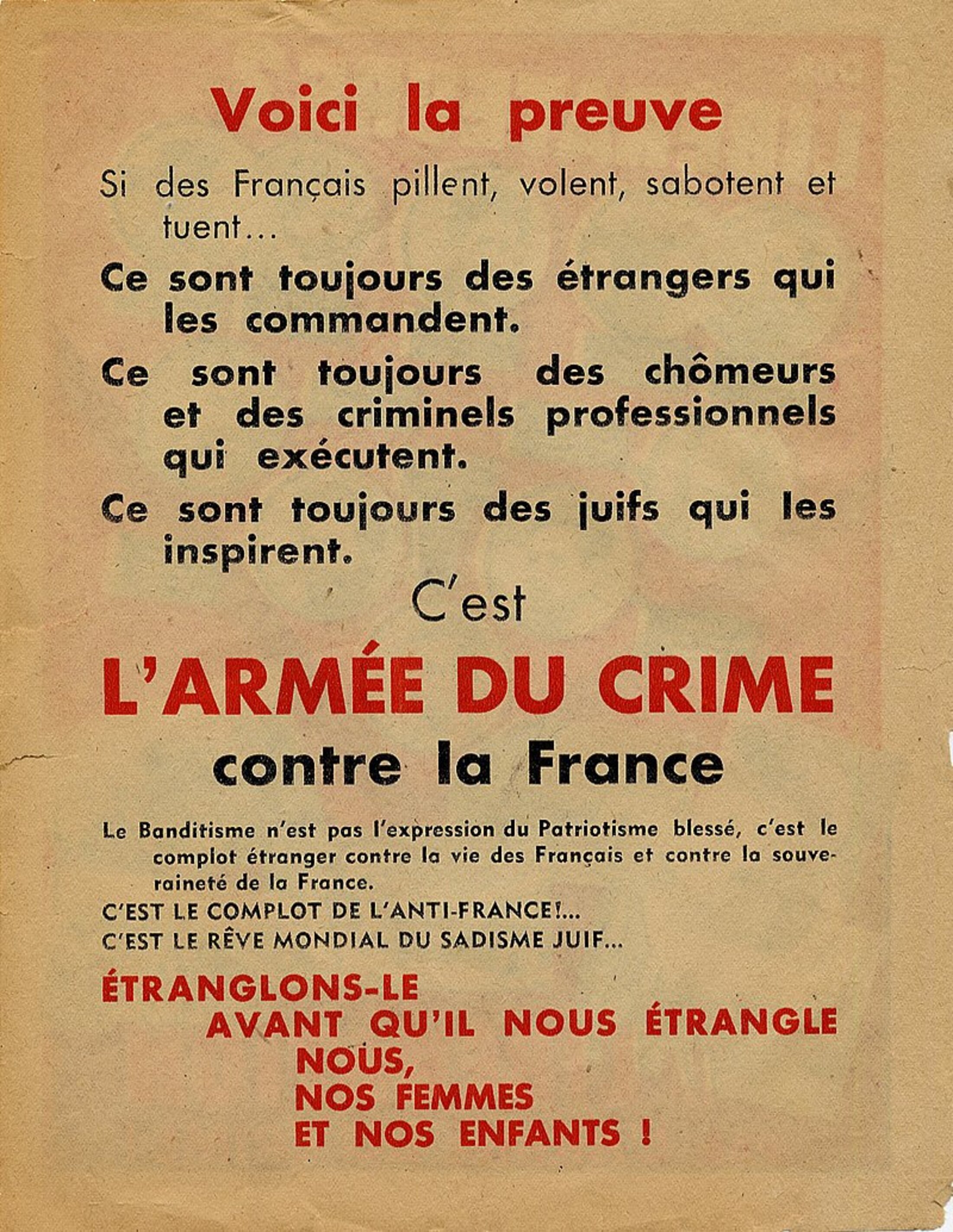 Il y a ce mot terrible d'un putain de procureur français des tribunaux spéciaux qui a dit à l'audience : vous êtes communiste, étranger et juif, trois raisons pour que je demande la peine de mort contre vous. Il n'a pas survécu, il a été abattu par la Résistance*.