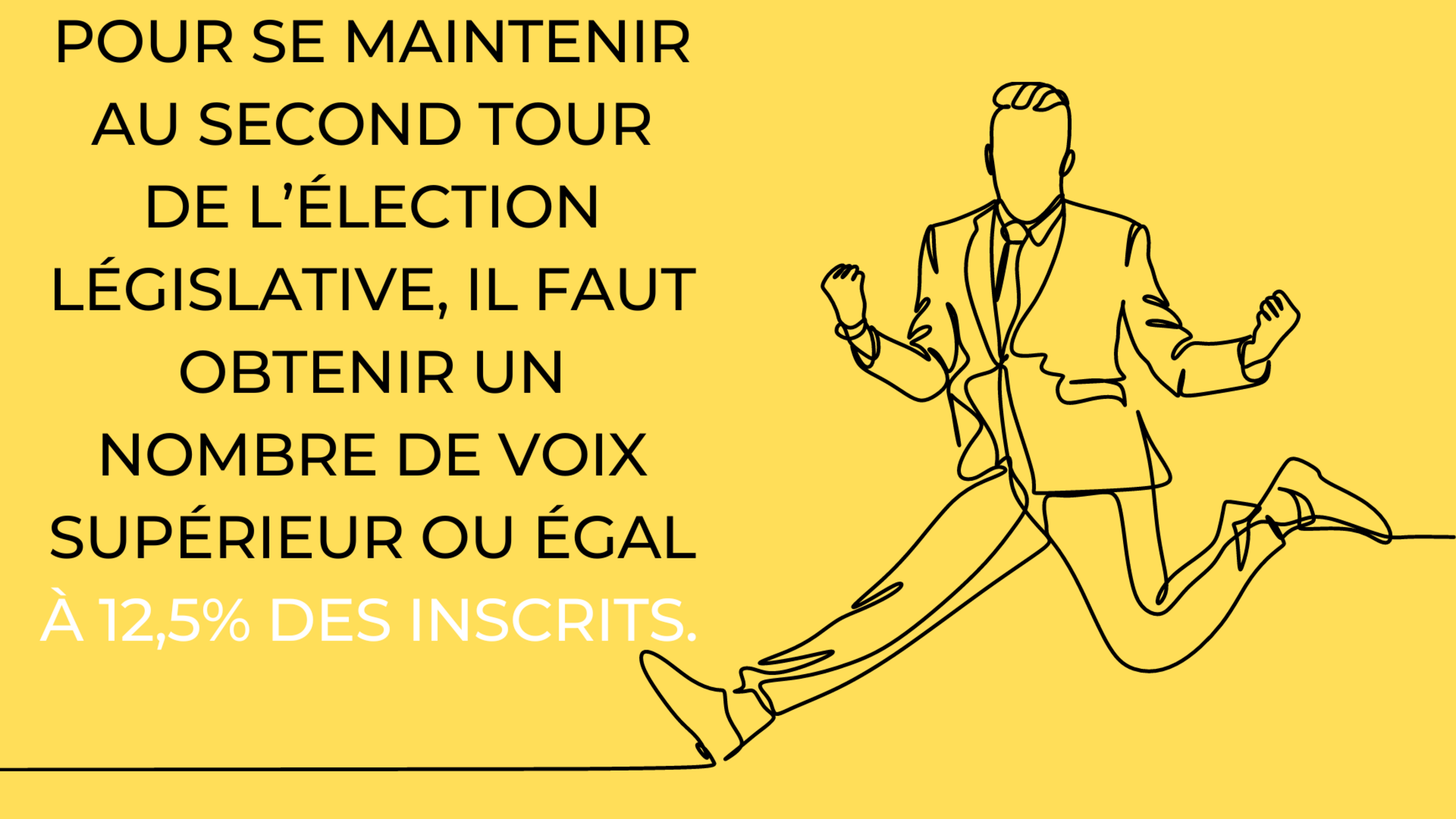 Pour se maintenir au second tour de l’élection législative, il faut obtenir un nombre de voix supérieur ou égal à 12,5% des inscrits.