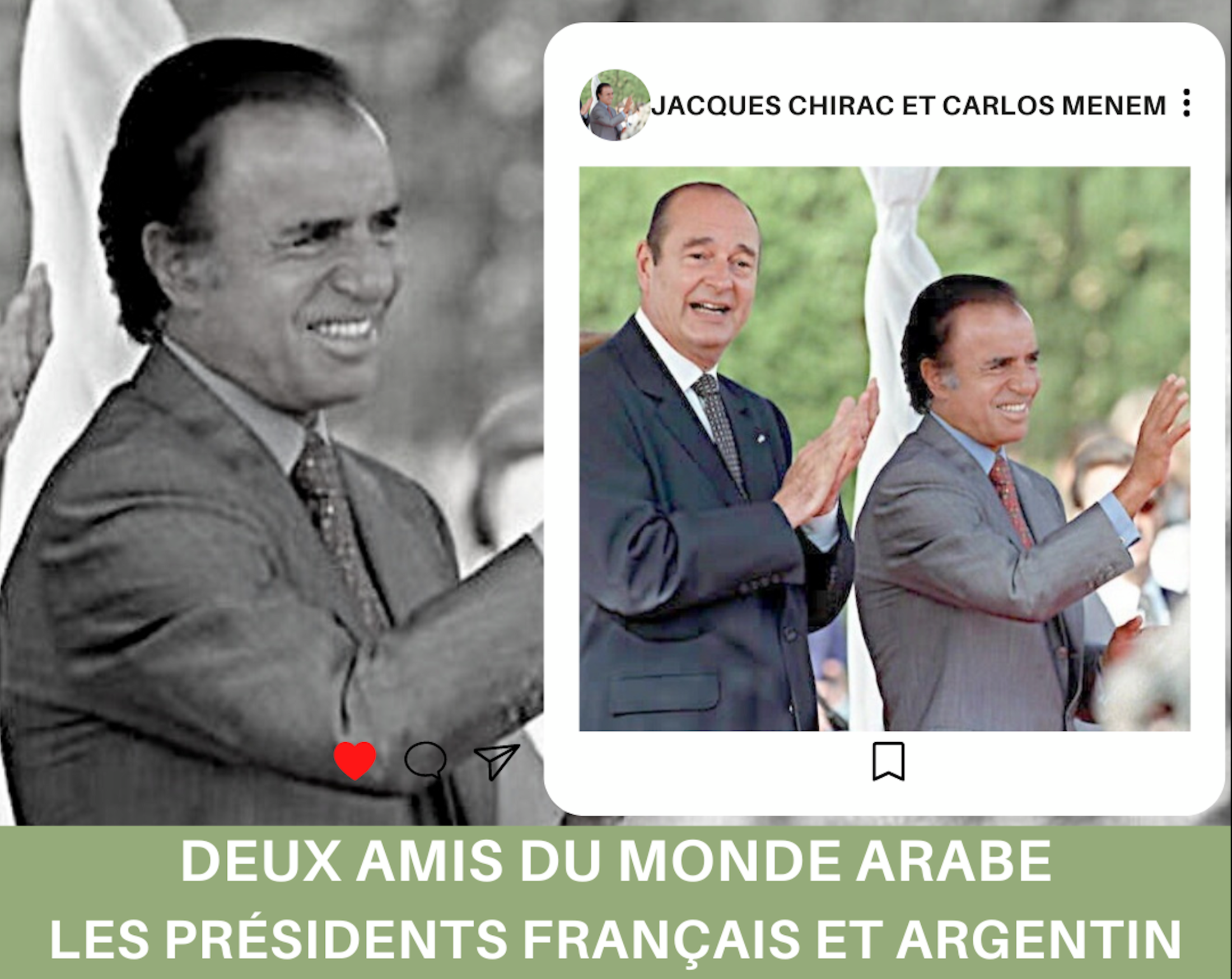 Et l’on se souvient de la rencontre en France, en 1997, entre le président argentin d’origine arabe Carlos MENEM et le plus arabophile des présidents français, Jacques CHIRAC.