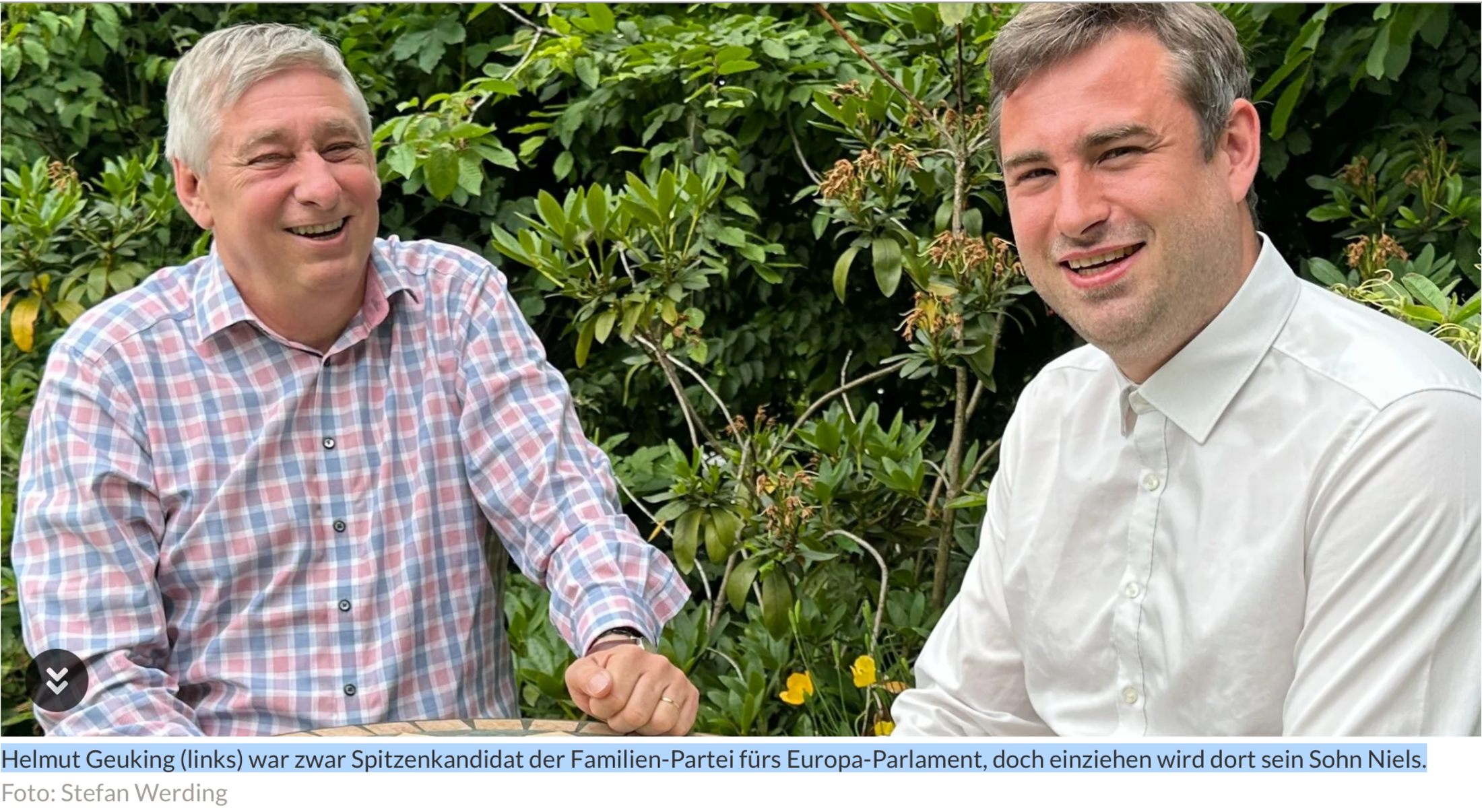 L'examen de certaines carrières politiques au sein du Parlement européen révèle une dimension particulière de cet entrisme : la transmission de mandats au sein de lignées familiales. Le député allemand Niels Geuking, membre du Parti des Familles d'Allemagne (Familien-Partei Deutschlands), incarne parfaitement cette dynamique. Son parcours politique est inséparable de celui de son père, Helmut Geuking.