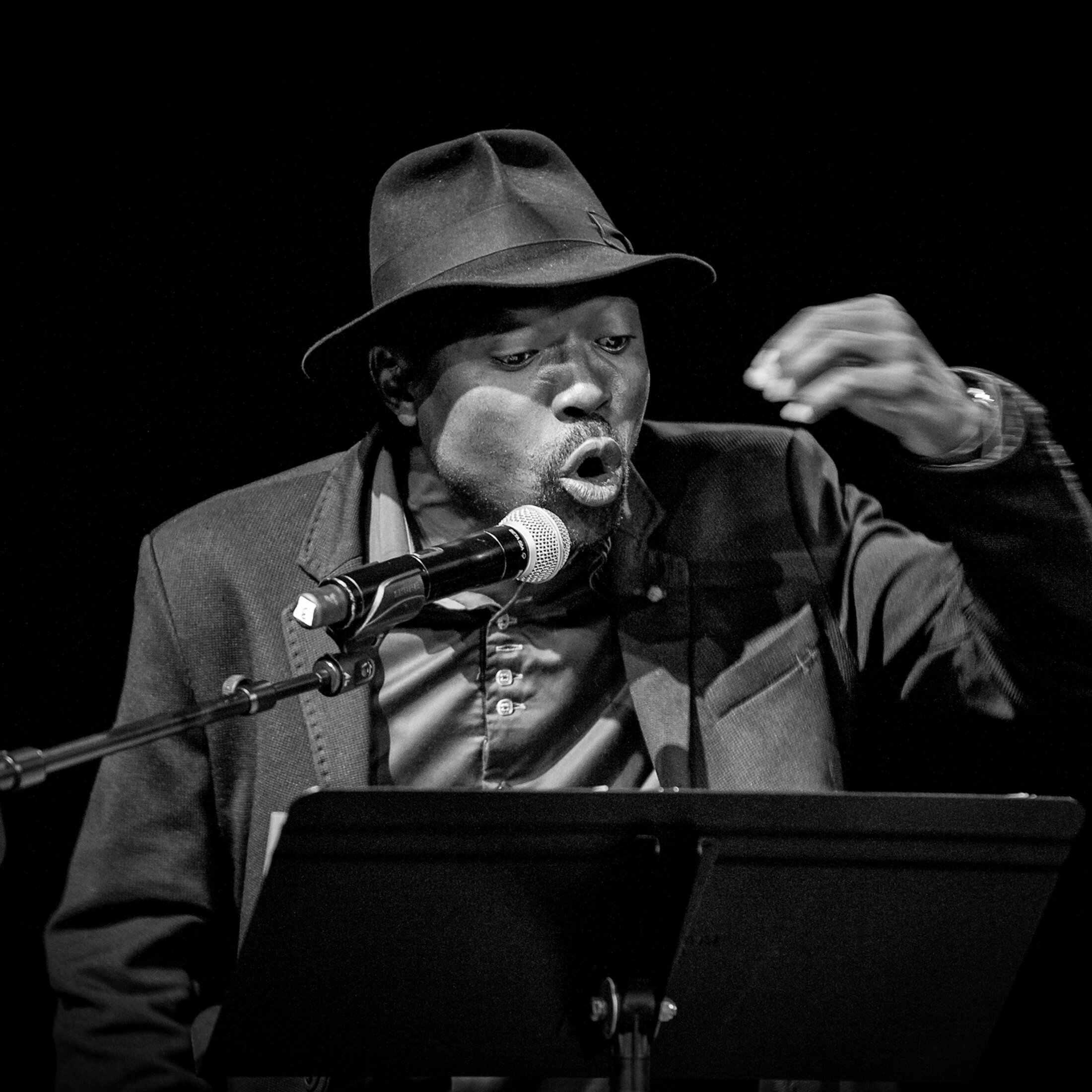 Quand on l'a vu entrer dans l'amphithéâtre Marguerite de Navarre au Collége de France, d'aucuns avaient pu imaginer ce que cet homme qu'on avait vu s'échauffer quelques minutes plus tôt dans les couloirs allait produire. Les voisins murmuraient les noms de Laferrière, de Mabanckou, d'Achille Mbembe , impatients de les entendre. Dans cette liste d'intervenants, Dieudonné Niangouna faisait presque figure d'outsider, celui qu'on n'attendait pas tout à fait. Puis il s'est levé et s'est avancé vers le pupitre duquel dépassait sa tête coiffée d'un chapeau . Pendant près de dix minutes il a boxé la situation comme il aime si bien le dire. Boxé la langue de l'Autre, boxé avec les mots les têtes de ceux gentiment assis dans la salle de l'institution parisienne. Du Kung-fu ! Il ne faut jamais jamais jamais être d'accord. Il faut rester en colére. Les mots s'échappent dans un flux incessant, on suit on écoute mais prendre des notes devient impossible, ça va trop vite, c'est puissant, ça reste là dans l'instant-présent, c'est en train de se passer. A la fin de son intervention, je me suis demandé si en dix minutes Dieudonné Niangouna n'était pas parvenu à faire de l'ombre à Dany Laferrière, Achille Mbembe et Alain Mabanckou. Le dernier n'en croyait pas ses oreilles. Il est complétement malade, il me plait, disais-je à la jolie demoiselle assise à côté de moi.