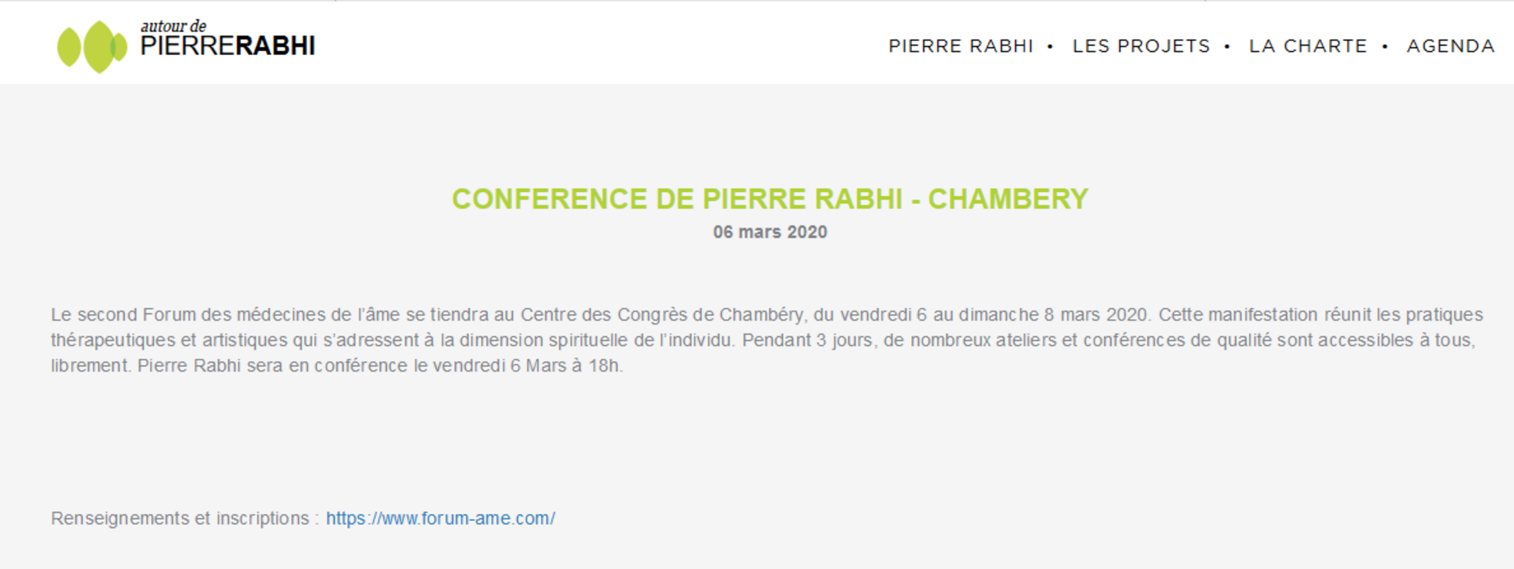 Ainsi, donc, dans la même journée du vendredi 6 mars, Pierre Rabhi a pu à Chambéry expliquer le réchauffement climatique à des collégiens, mais aussi, en conférencier multicartes, intervenir dans la même ville au "Second Forum des médecines de l'âme", pour ce que l'on imagine être un grand moment de science et de rationalité :