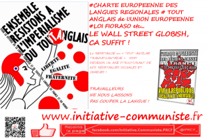 La « Charte européenne » institue en effet l’idée de « minorités linguistiques » bénéficiant de droits particuliers (tout en excluant de cette reconnaissance les travailleurs immigrés non francophones !) et elle accompagne manifestement la contre-réforme territoriale qui découpe la « République une et indivisible » issue de la Révolution de 1789/95 en treize Euro-Länderporteurs de légalités divergentes et concurrentes : tout cela s’additionnant, la menace est évidente contre l’unité territoriale et linguistique des services publics, des statuts publics, des conventions collectives nationales, du SMIG national, des qualifications et des diplômes nationaux, du Code du travail, de l’égalité juridique des citoyens sur tout le territoire national. Oui les langues régionales font partie du patrimoine indivis de la Nation, mais elles ne doivent pas être instrumentées pour détruire la citoyenneté républicaine – si imparfaite qu’elle soit en régime capitaliste –, ni pour désétablir la langue française, PREMIER SERVICE PUBLIC du pays, socle linguistique du tous ensemble et en même temps auquel aspirent les travailleurs et bien commun à égalité de l’ensemble des pays francophones. Nous refusons donc catégoriquement une « charte » qui vise à « prendre en étau » la langue française entre le tout-anglais de l’UE transatlantique et de l’OTAN et les multiples groupes euro-séparatistes que promeuvent les bourgeoisies riches de plusieurs régions périphériques françaises. Les langues régionales doivent s’enseigner dans le cadre de l’Education nationale, l’apprentissage du français et des littératures française et francophones, aujourd’hui sacrifié, doit être revalorisé d’un bout à l’autre de la scolarité, le plurilinguisme doit être rétabli dans le second degré (la contre-réforme du collège aboutit à la mise à mort de l’allemand, de l’italien, du polonais, du russe, du portugais et des langues anciennes) et place doit être faite par l’Education nationale, là où une demande populaire existe, à l’enseignement laïque des langues de l’immigration, notamment de l’arabe : non pour opposer les « communautés », mais tout au contraire pour permettre à une future République sociale, souveraine et fraternelle en marche vers le socialisme d’intégrer la diversité. et de diversifier l’ « intégration » au bénéfice de tous les enfants.