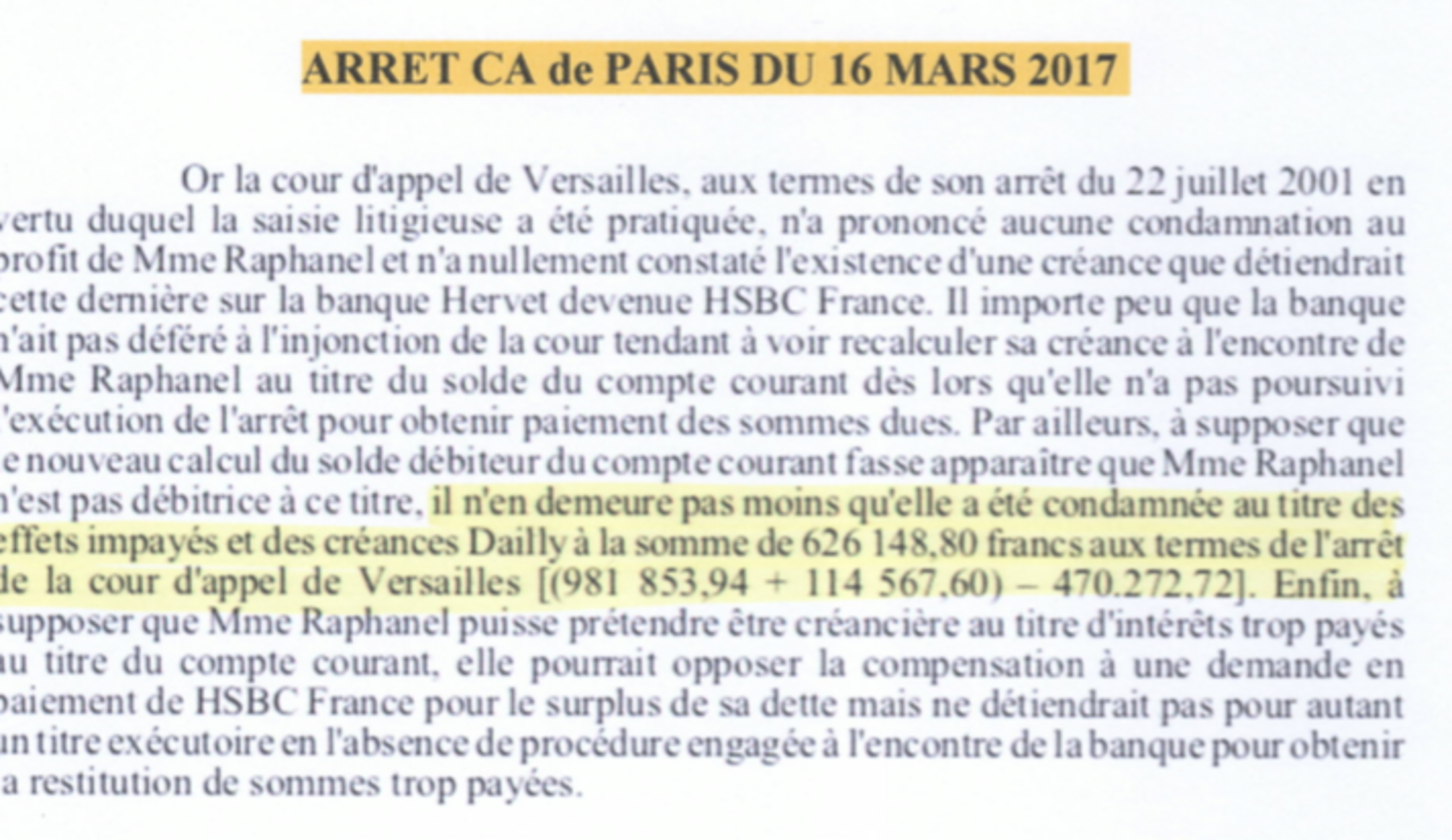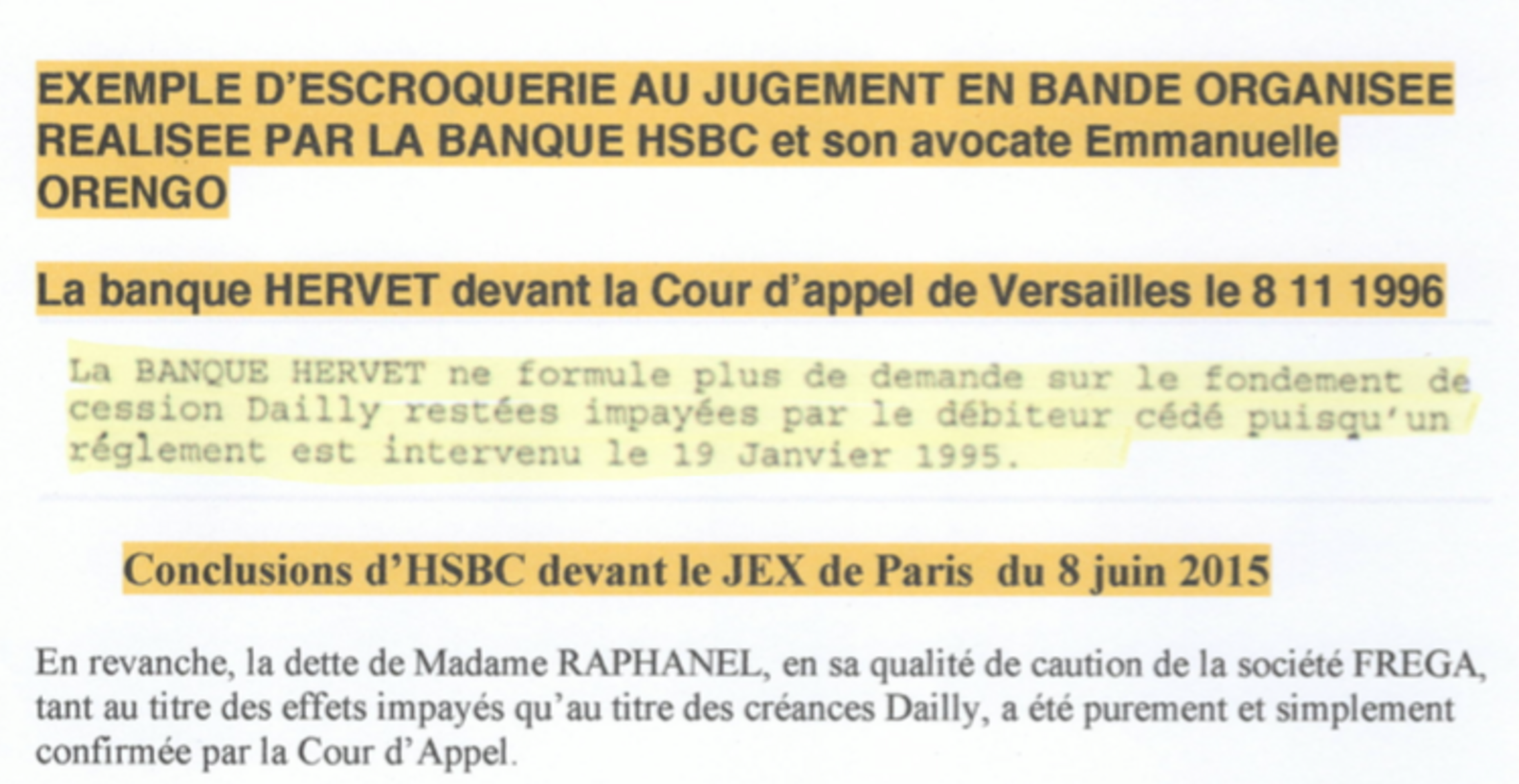quelques mois pour le recevoir, la banque HSBC et son avocate Maître Emmanuelle ORENGO le 8 juin 2015
