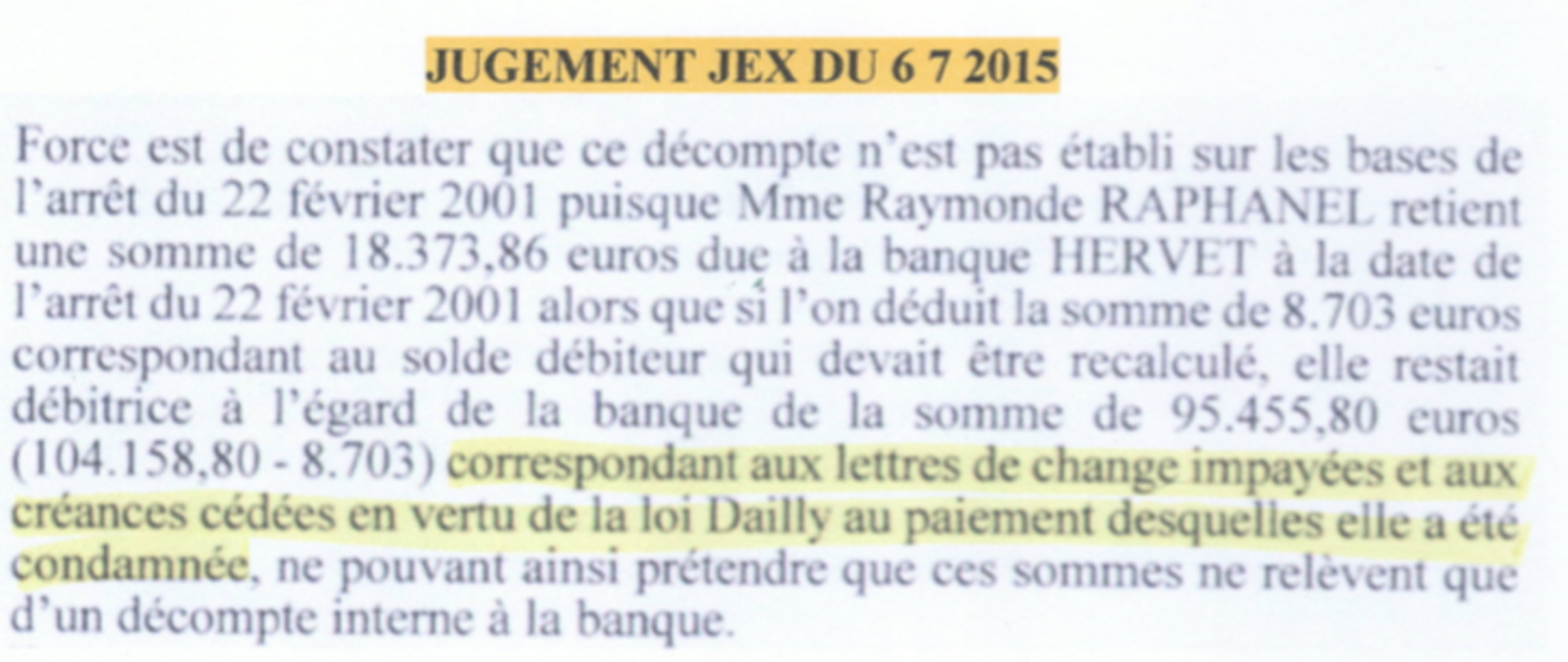 Grâce à cette affirmation de dette DAILLY la banque bénéficie d'un jugement favorable grâce a une escroquerie